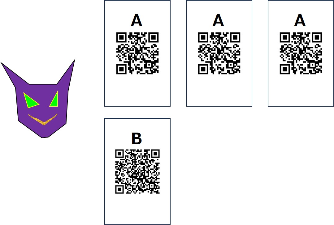 ある所に悪魔がいて、6億円相当の宝の隠し場所を示す「A」と、ほぼ同じ6億円相当の宝の隠し場所を示す「B」と、2枚のカードを持っています。