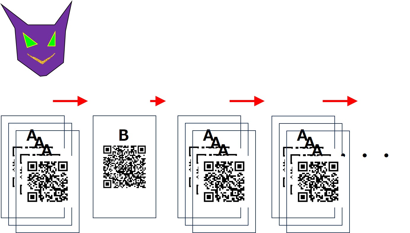 このとき悪魔は、「A」を選んだときは3回、「B」を選んだときは1回見せます。