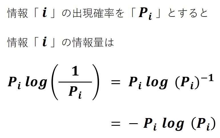 もちろん宇宙の種類の数をそのまま扱っても良いのですが、ホモサピエンスの脳のキャパシティーに合わせて扱う数を小さくするために、またわかりやすく「無価値=0」とするために、また将来エントロピーをわかりやすく足し算で扱うために、情報の価値の大きさには対数を使います。