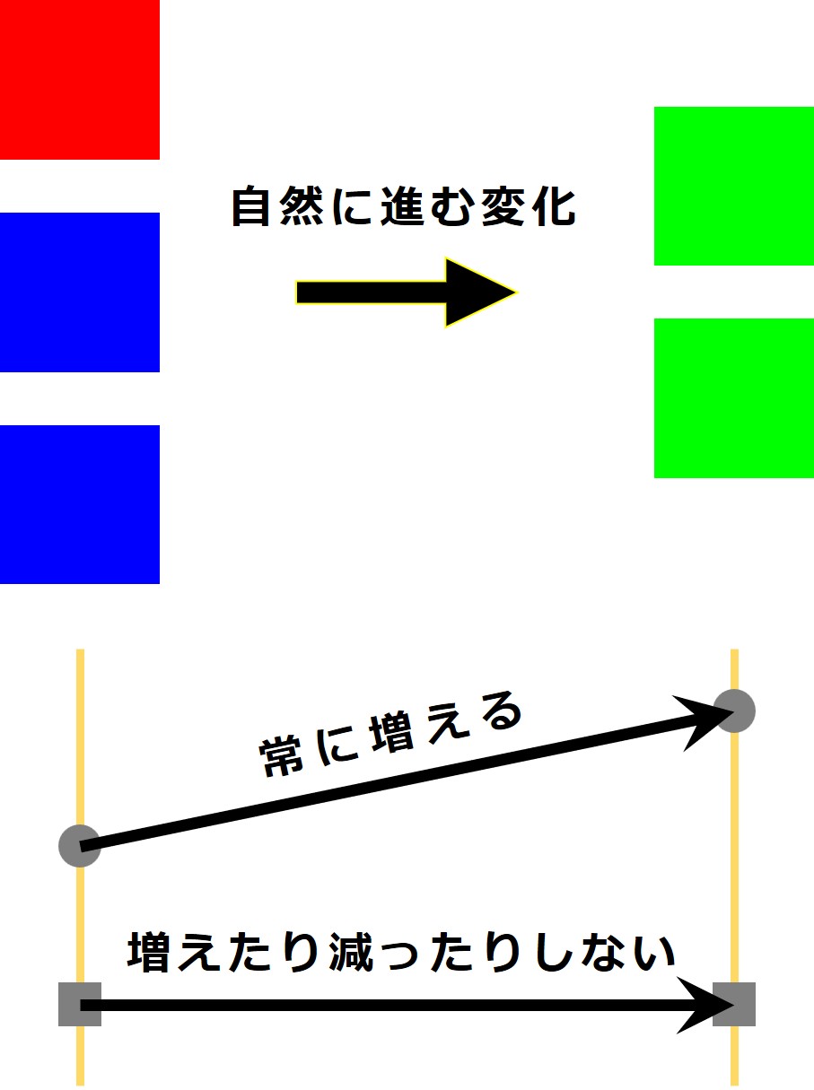 上記の変化のうち、「→」は途中で止めることのできる変化ですが、「⇒」は自然に勝手に進む変化です。