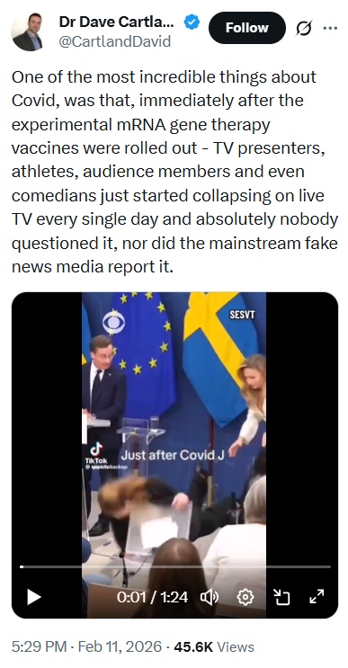 コビッドに関する最も信じがたいことの一つは、実験的なmRNA遺伝子療法ワクチンが展開された直後から、テレビ司会者、アスリート、観客、さらにはコメディアンまでが、毎日のように生放送中に突然倒れ始めたのに、誰もそれを疑問視せず、主流のフェイクニュースメディアも一切報じなかったことです。 https://t.co/MfZNNQV9jv