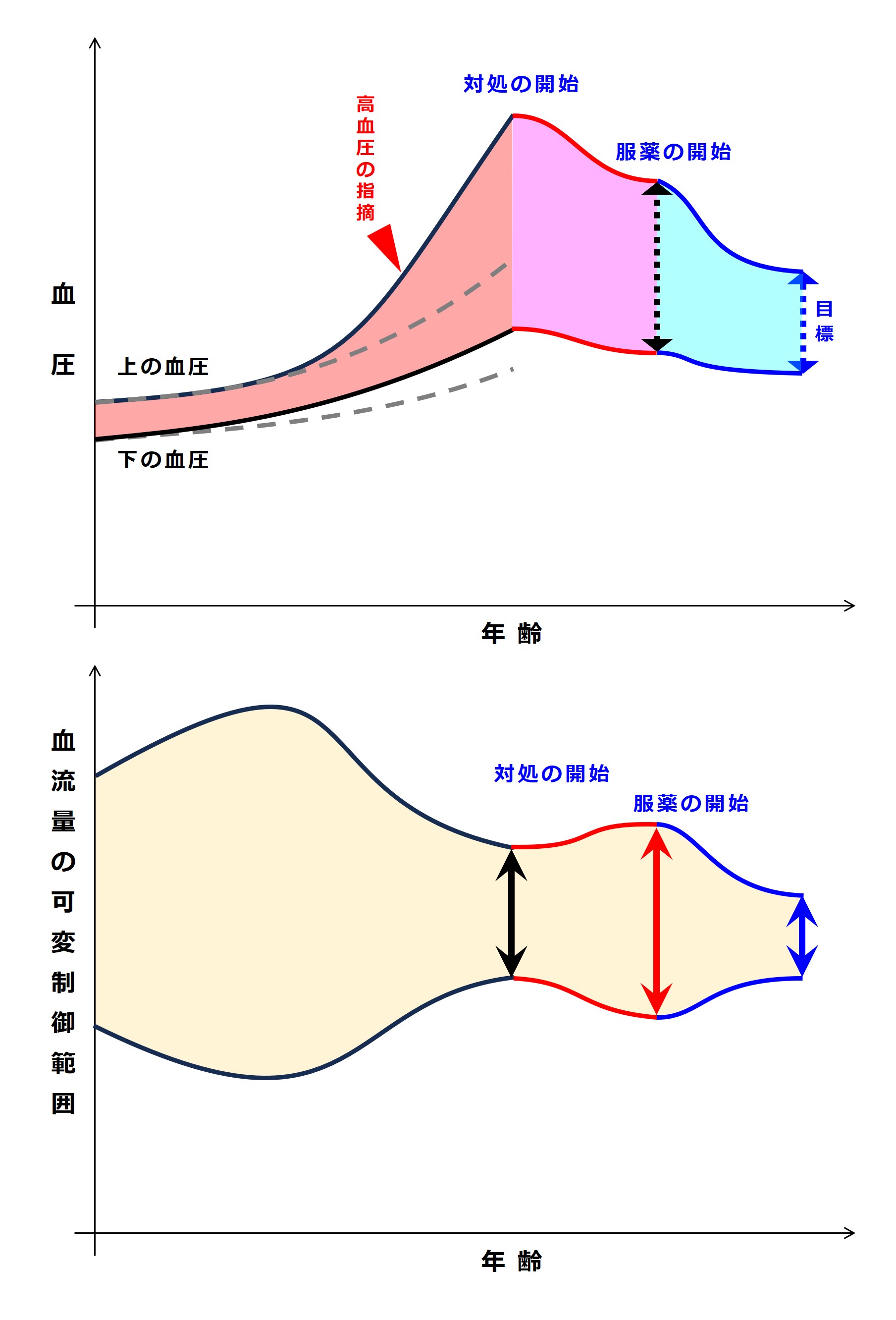 一般の方は、基礎医学系の学校教育で「生理学」を学ぶ機会がなく、基礎知識が無いまま高血圧症の治療についての説明を受けることが多いので、「血圧を下げることの悪影響」を知らない方が多いようです。