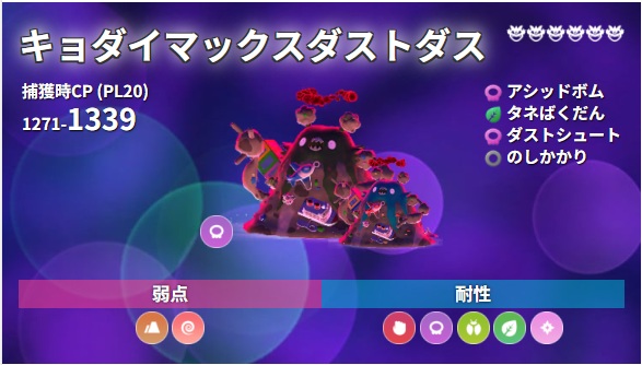 ダストダス(キョダイマックス)は、「どくタイプ」のMAXわざを使う唯一のキョダイマックスです。