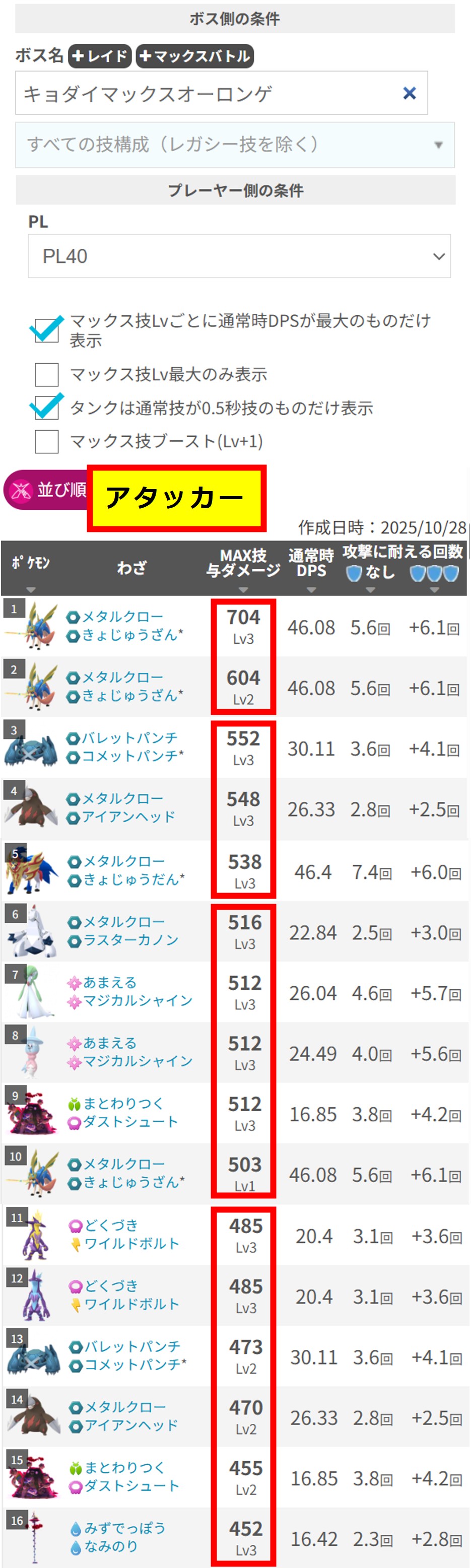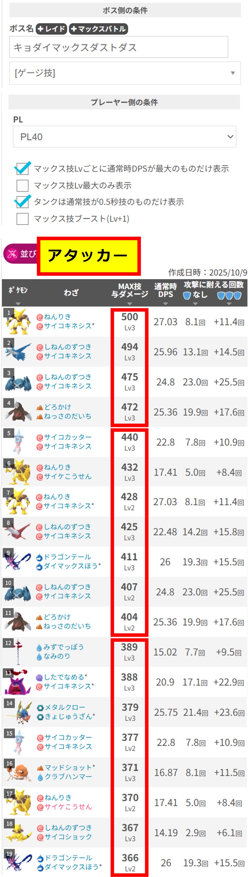 【マックスバトル】歴代ボスポケモンの攻撃力まとめ(みんポケ kenerl 2025.11.06)