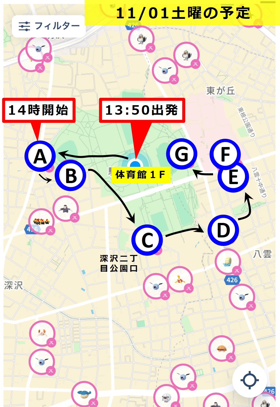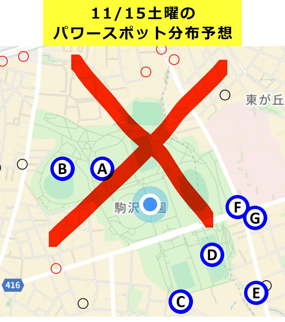 10/31金曜午後のパワースポット分布と11/01の新規出現の予兆に基づいて分布図を作成します。