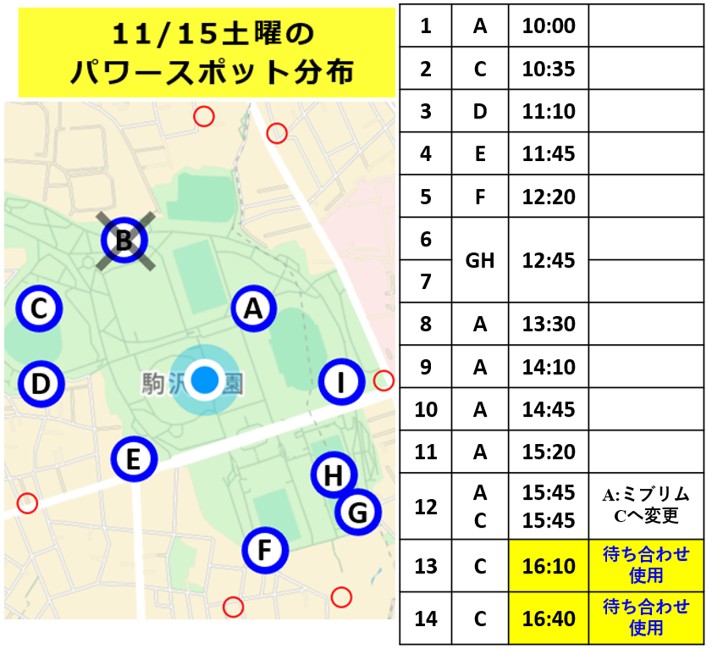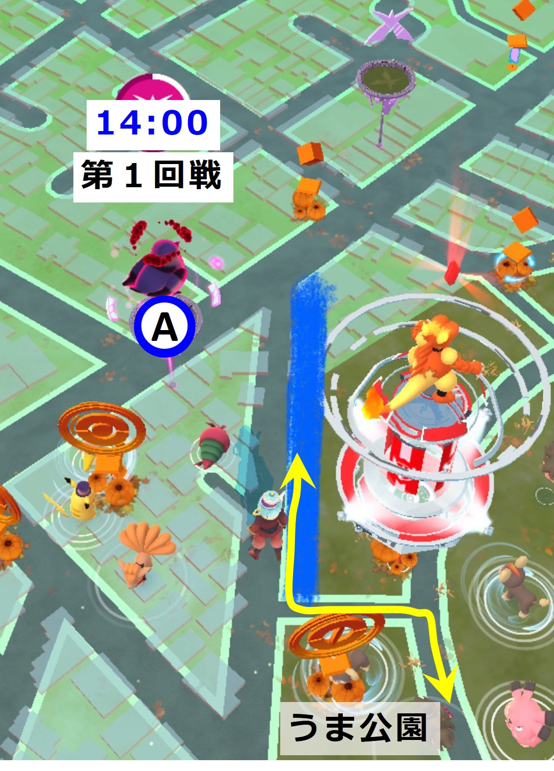 14時開始にも間に合わない方は、パワースポットでのバトルの移動を追いかけて、途中で合流して下さい。