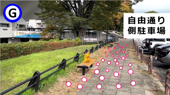 (4)リモート参加できるパワースポットを見つけようと公園内のパワースポットを観察しているプレイヤー