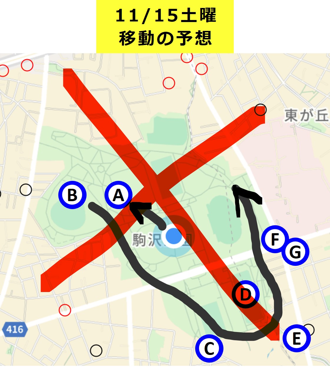 本日、駒沢公園内はパワースポット過疎地域となっており、どうしても住宅街へ出ざるを得ません。