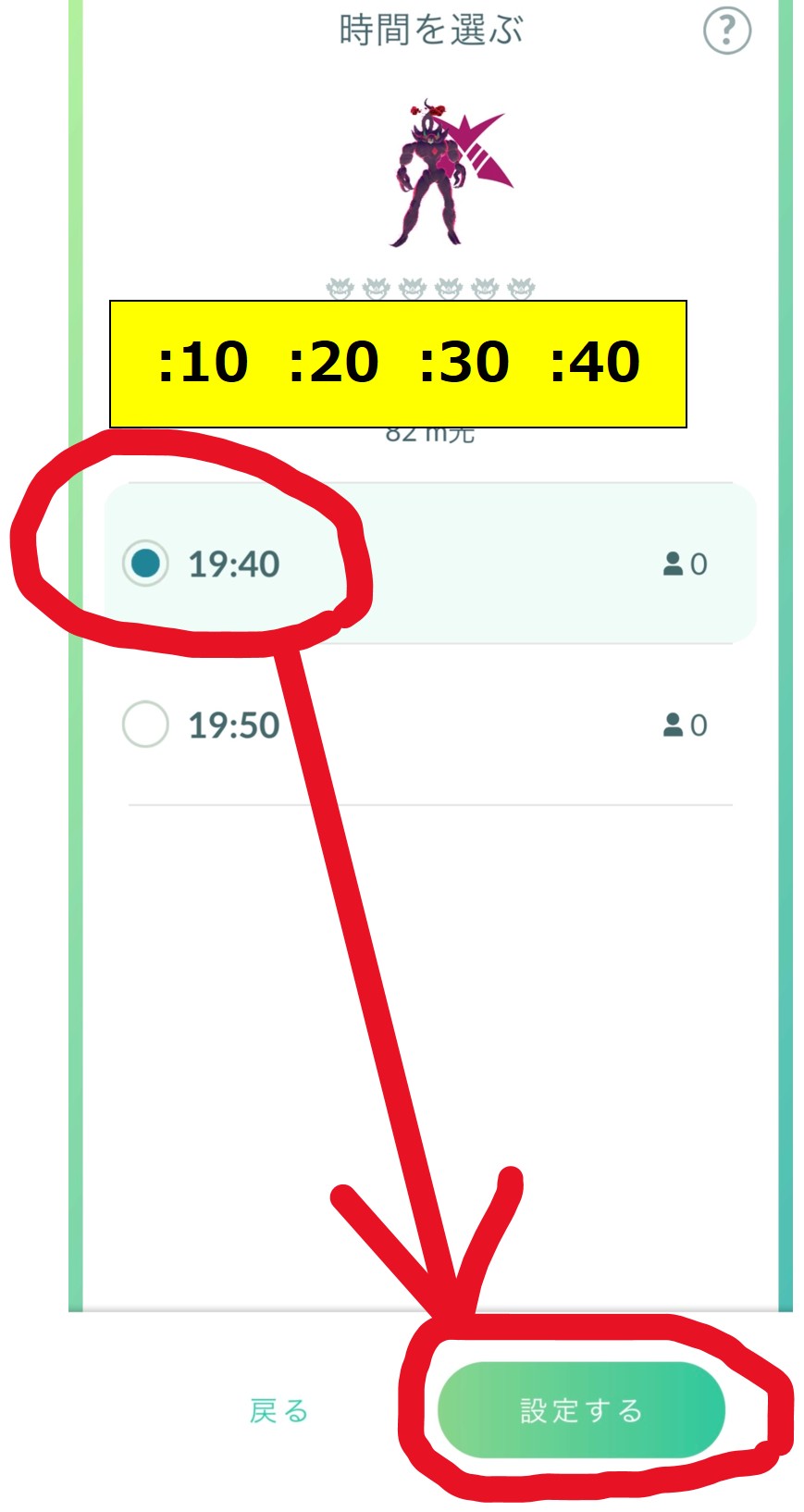 「 :00 :30 」にオーロンゲが出現しなかった場合は近くの別のパワースポットの「 :10 :40 」に待ち合わせをセットしました。