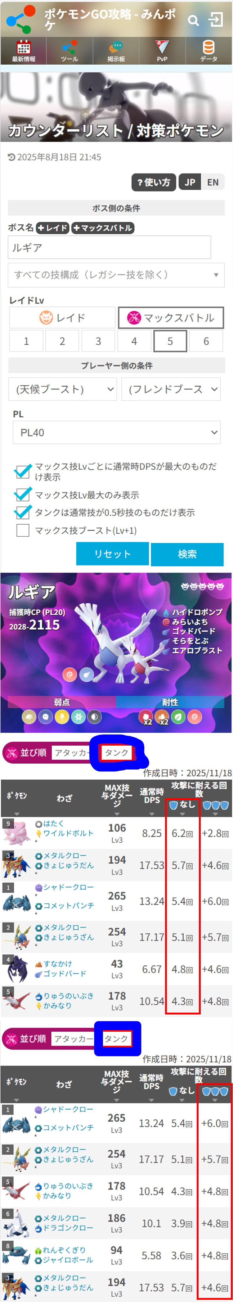 ◆ 【ポケモンGO】ダイマックスルギア対策おすすめポケモン (GameWith、2025.11.19)