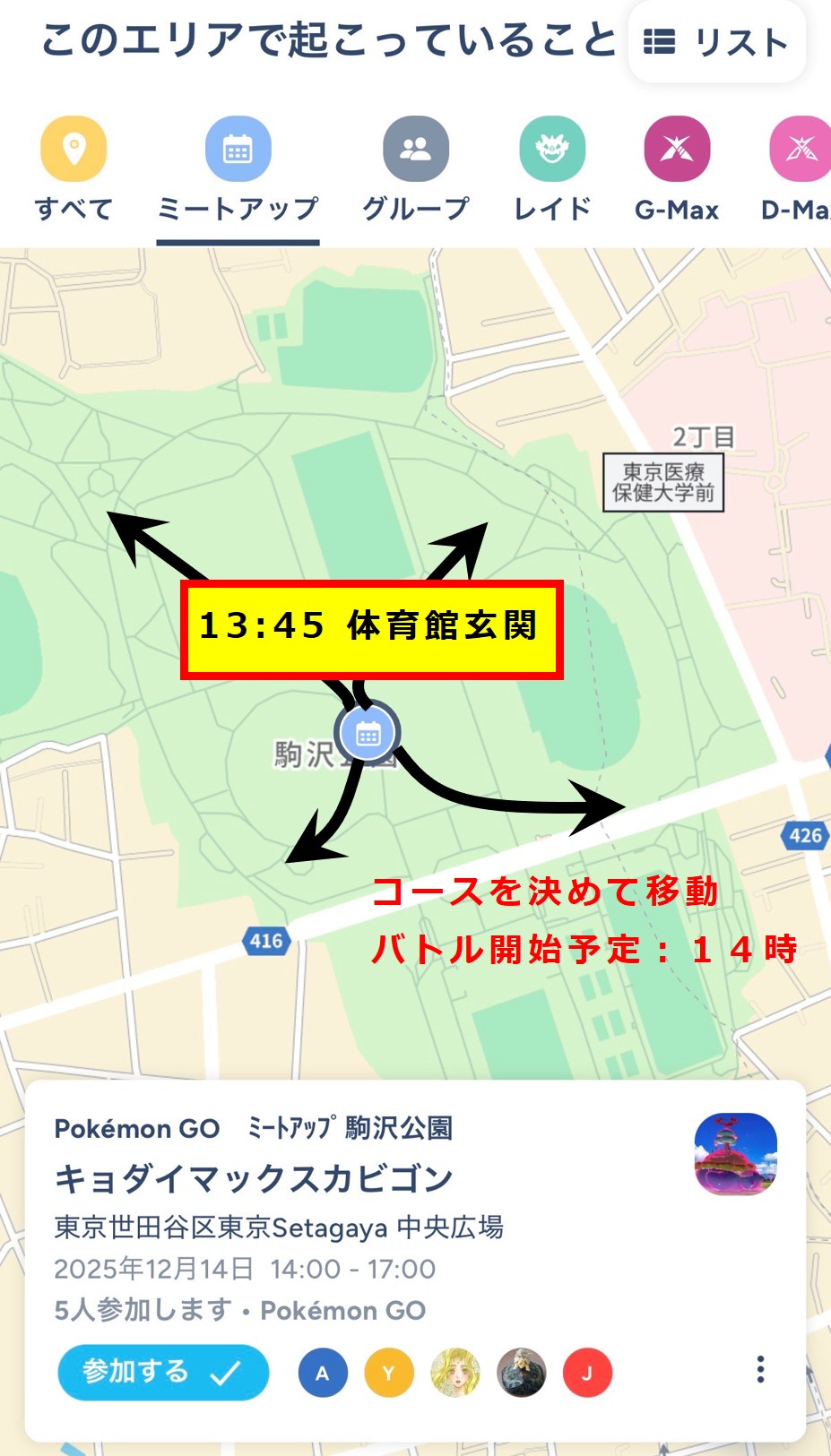 駒沢公園でのキョダイマックスも、ミートアップ活動と一体化していくでしょうが、都心にはない駒沢公園らしさ(みんなで協力してバトルし、公園に来た全員に捕獲チャンスを得てもらう)は堅持していきたいと思います。