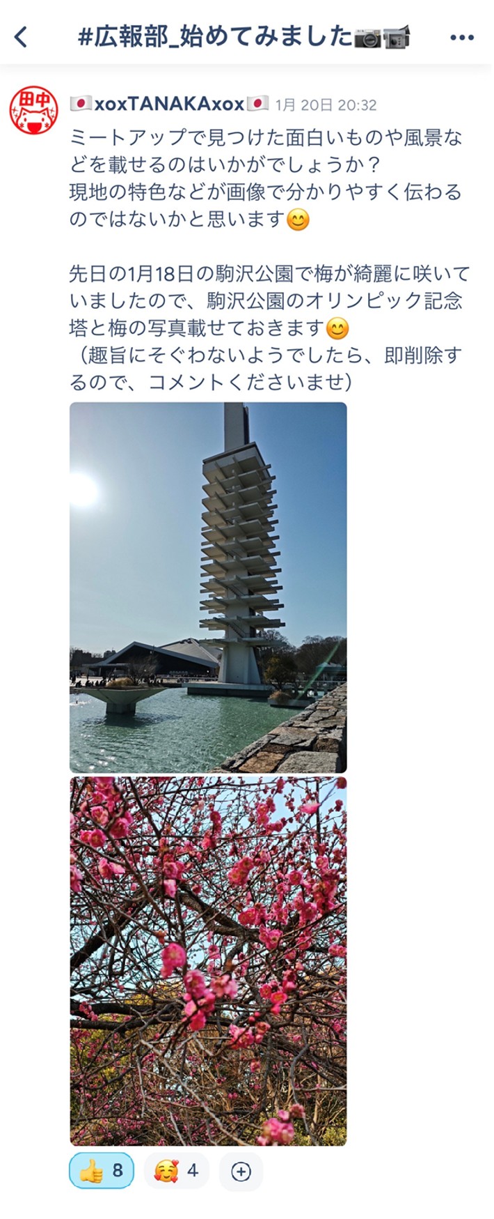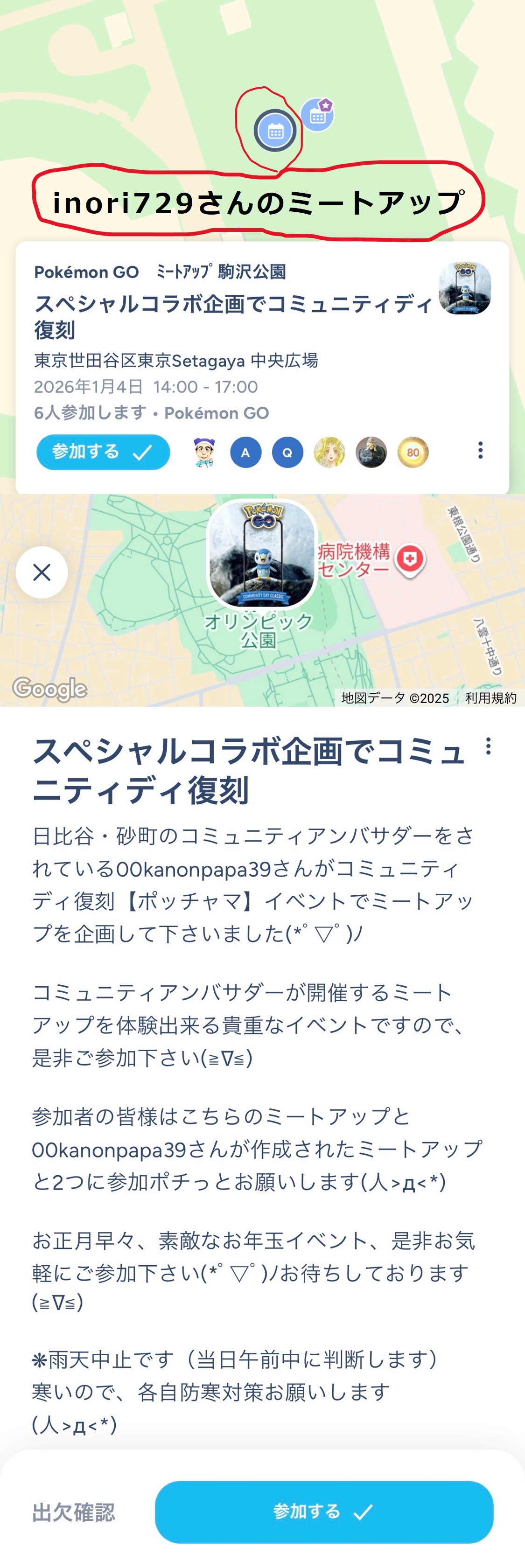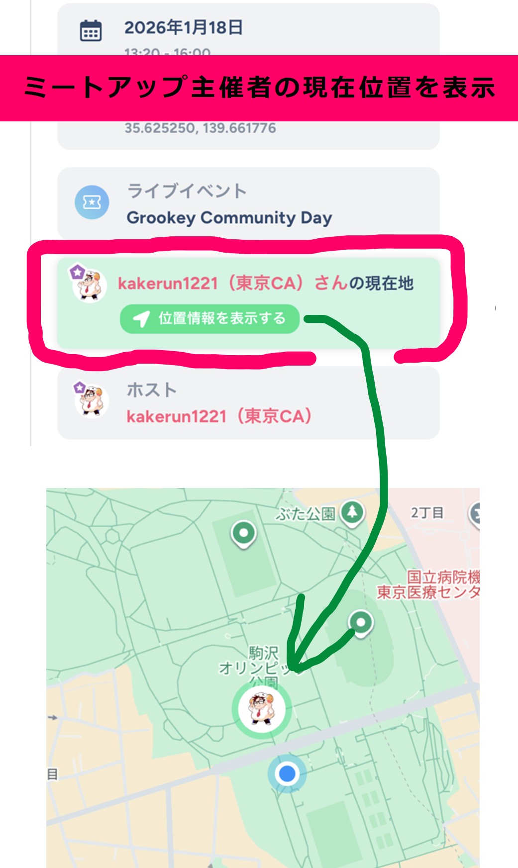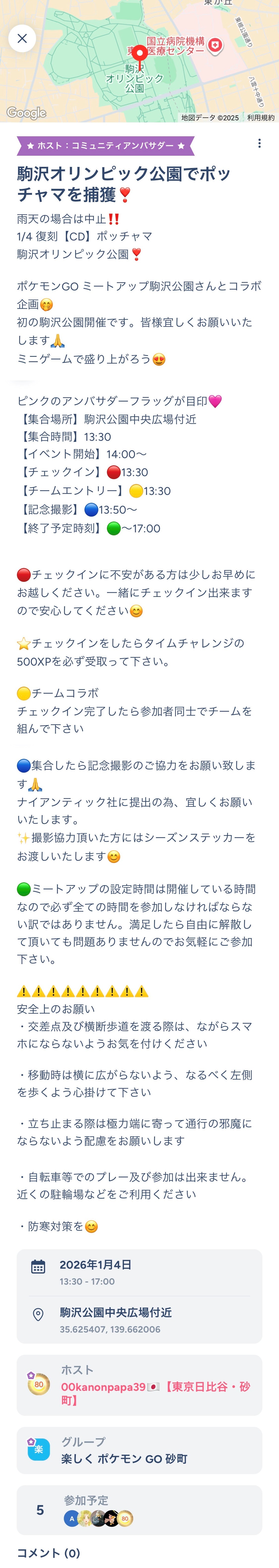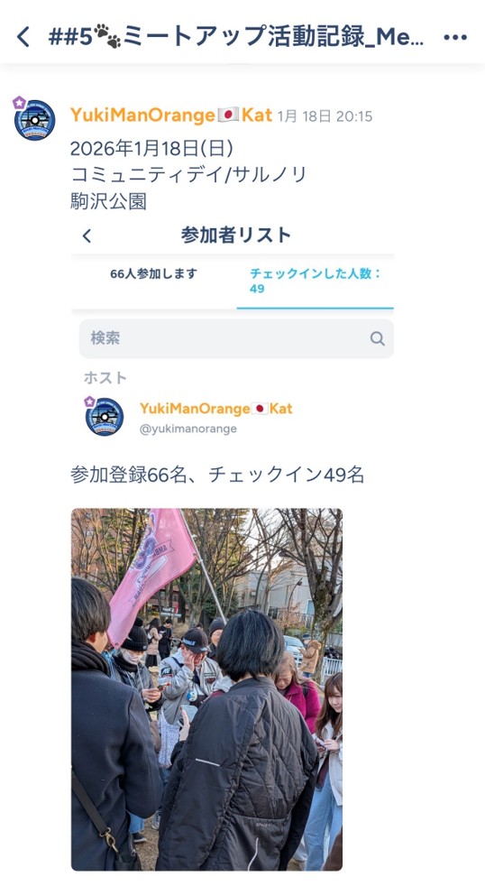 私もいろいろなグループに参加して少し投稿をチェックしましたが、去年作ったいろいろな予定を変更して駒沢公園でのアンバサダーミートアップを企画してくださったようです 😂
