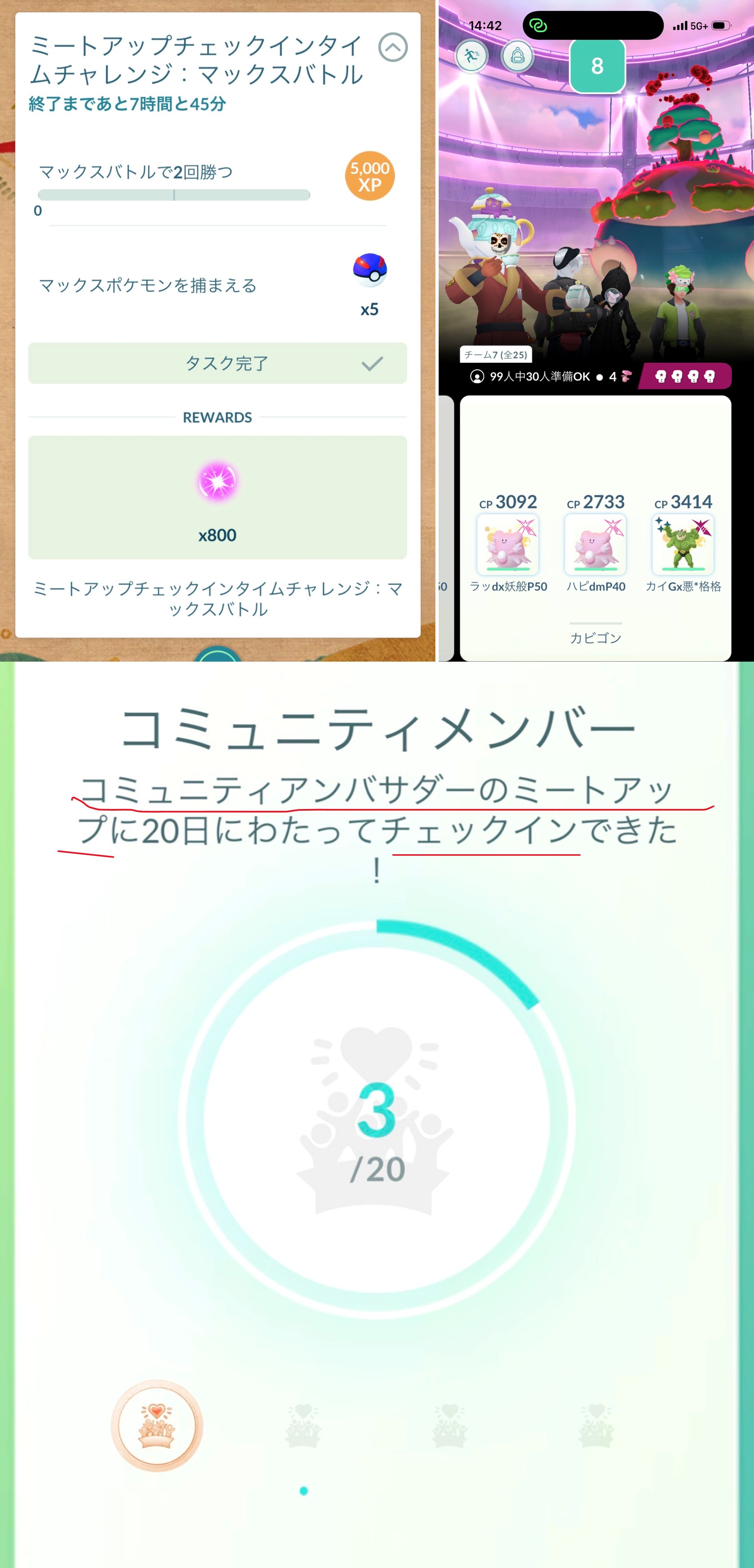 報酬付きで、マックス粒子800をいただき、アンバサダーミートアップ参加メダルが+1進みました。