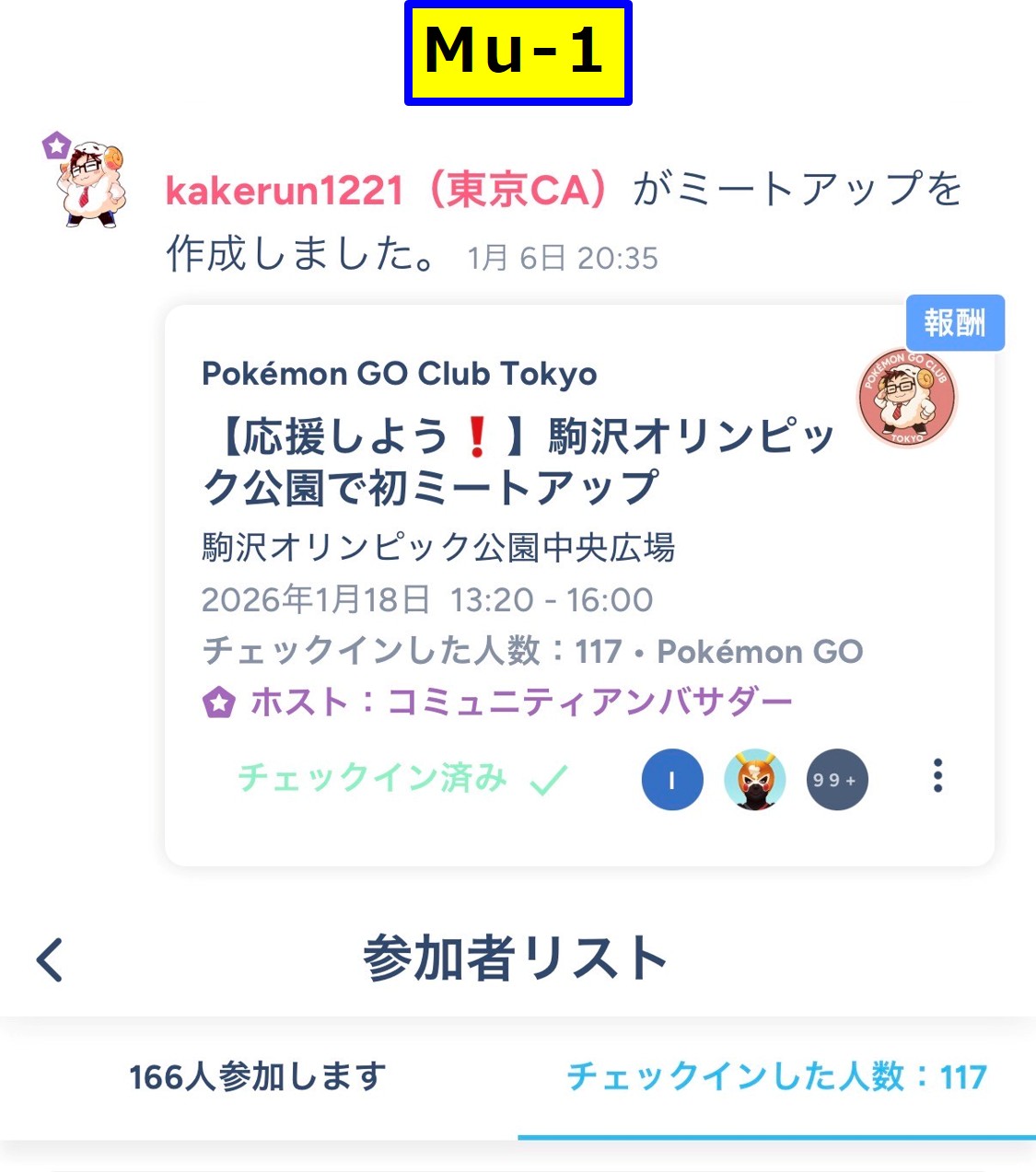 なるべく3つ全部(Mu-1、Mu-2、Mu-3)に参加表明し、全部にチェックインしましょう。(追加された Mu-4 にも参加しましょう)