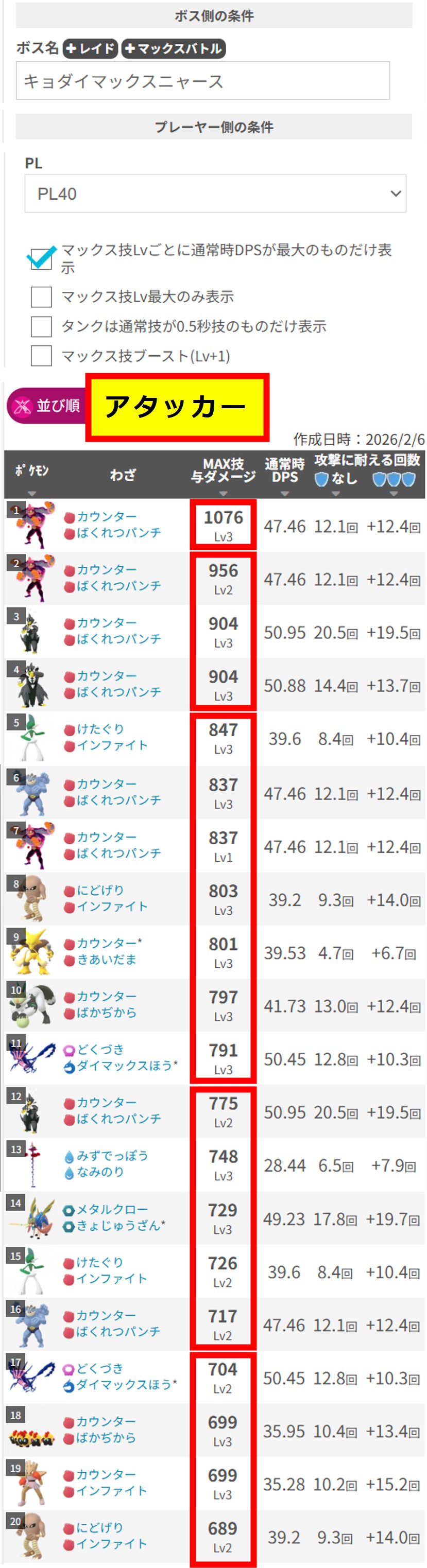 ◆ ポケモンGO:キョダイマックスニャース対策!何人で勝てる?おすすめポケモン攻略 (Hatena Blog、2026.02.07)