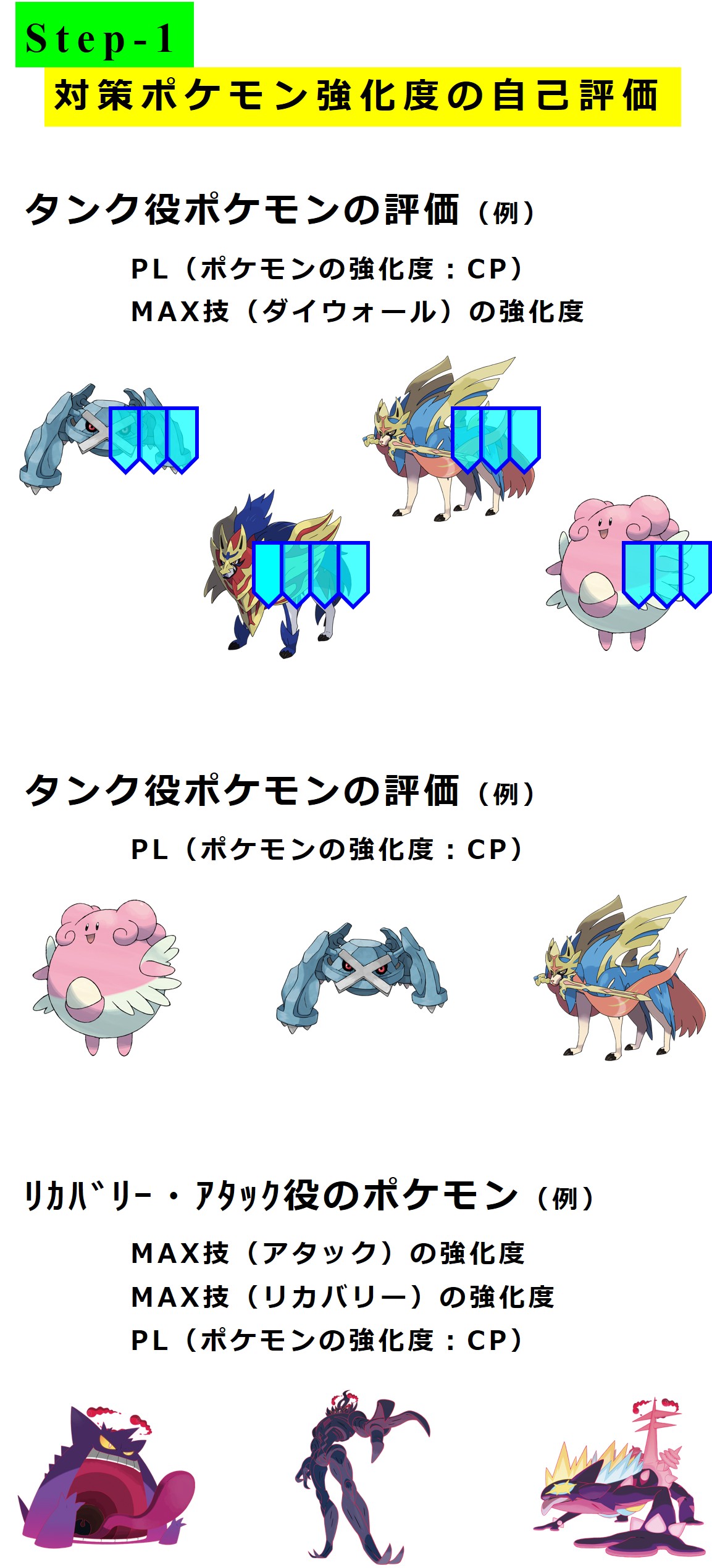 リカバリー・アタック役プレイヤーのタンクポケモンは、シールドを張りませんから、シールド無しのときの耐久性能を重視します。