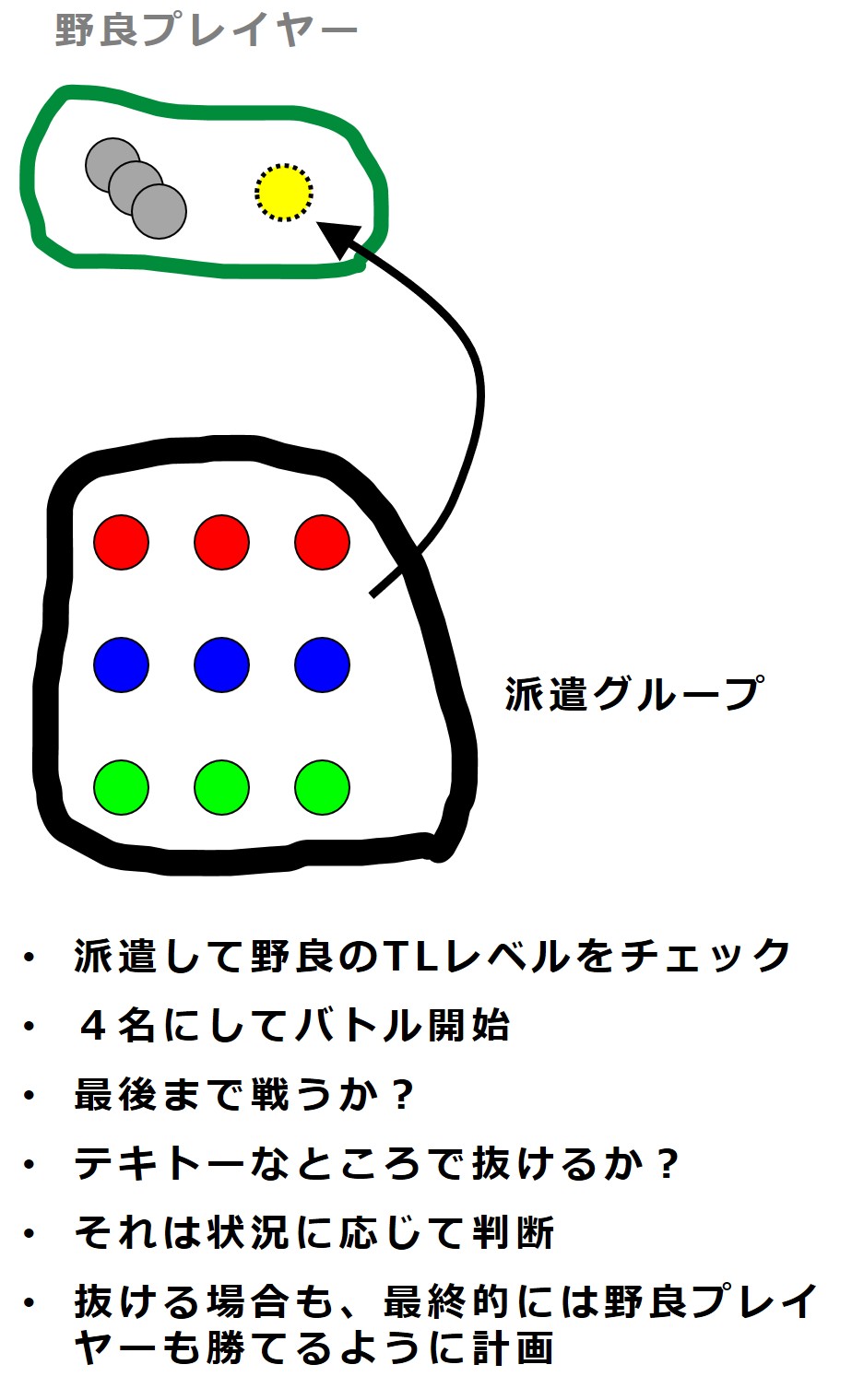 目的1:LINEグループにも入っていない、CampFire のミートアップにも参加していないというプレイヤーや、フリーのリモート参加プレイヤーは、バトルの待ち合わせ人数を見て動いています。私たちが待ち合わせ機能を積極的に使うことで、彼らが参加しやすいようにできます。