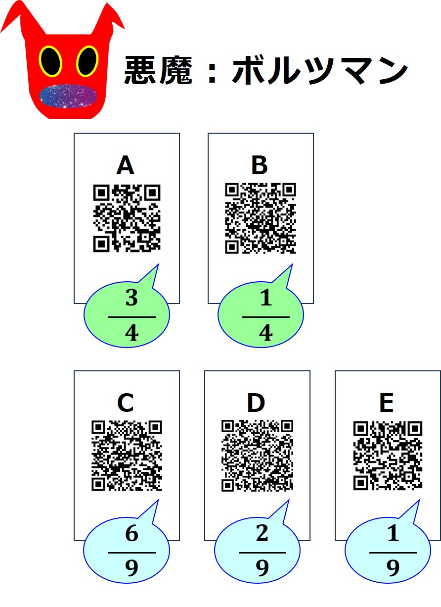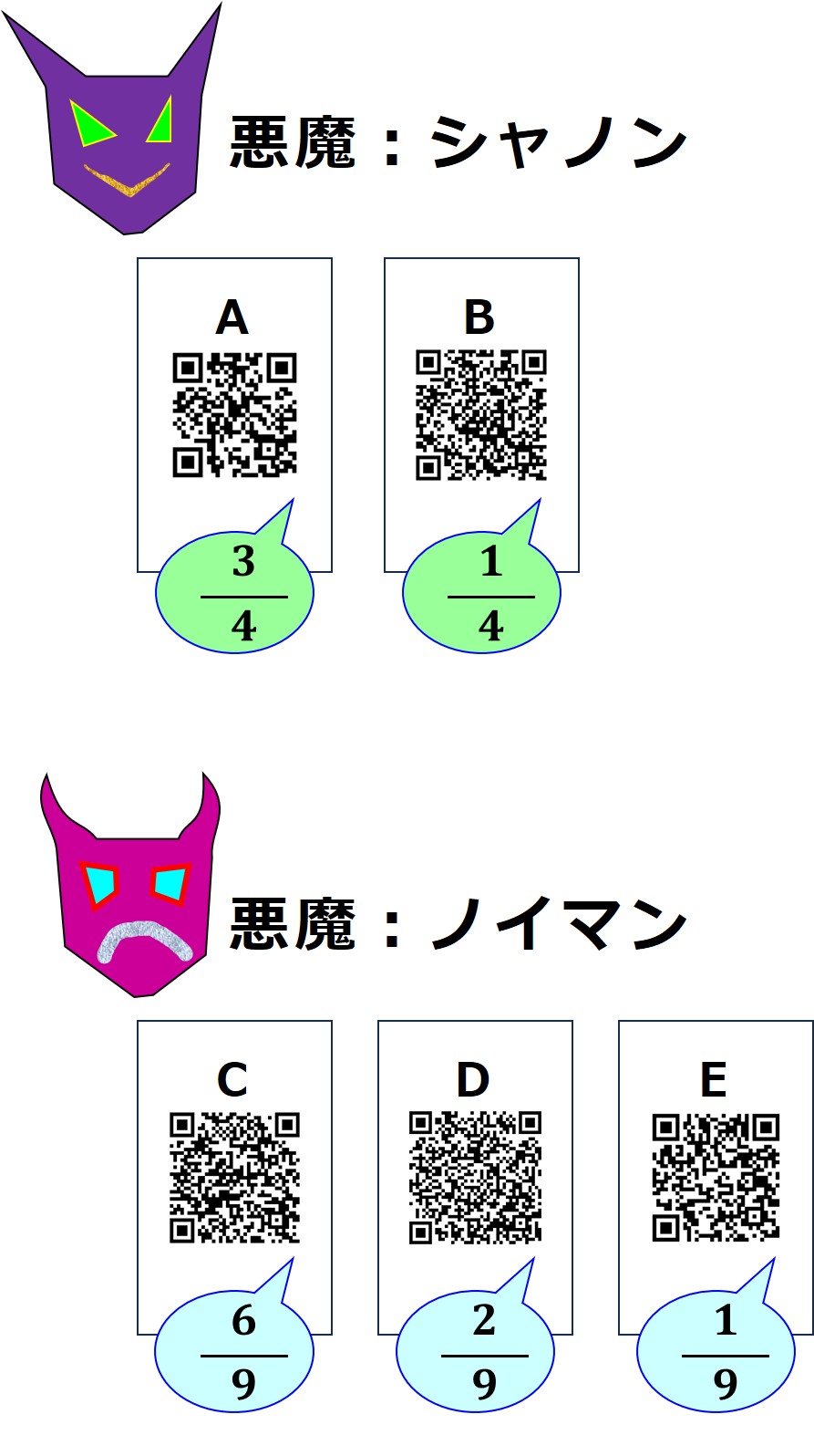 このとき悪魔は、「A」を選んだときは3回、「B」を選んだときは1回見せます。