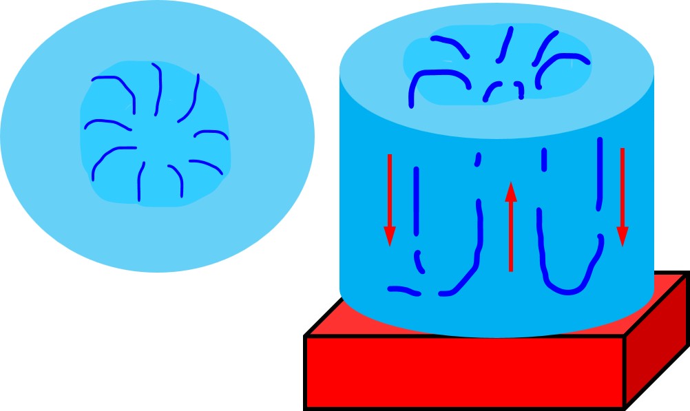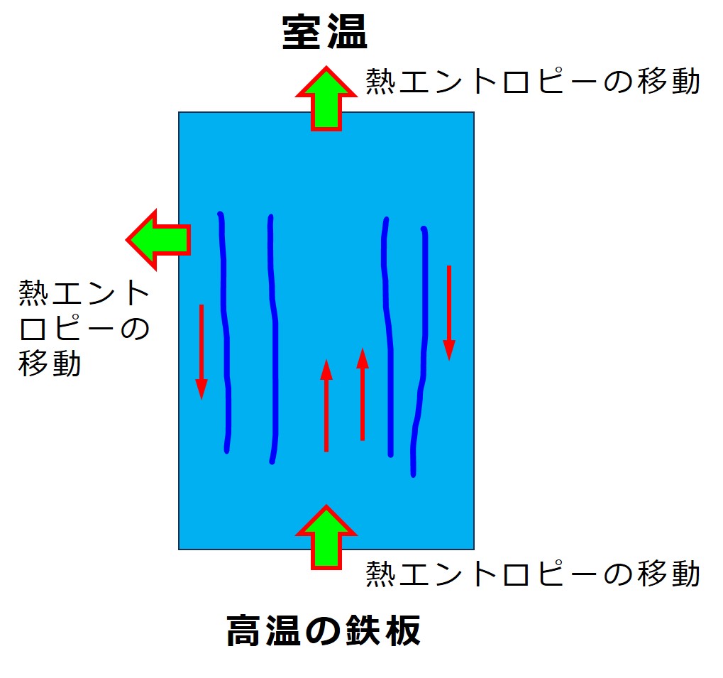 したがって、この渦模様が長時間保たれるためには、内部で発生し続けている「熱(多数の極微小な複雑で乱雑な運動)」を渦模様の外に、絶えず捨て続ける必要があります。
