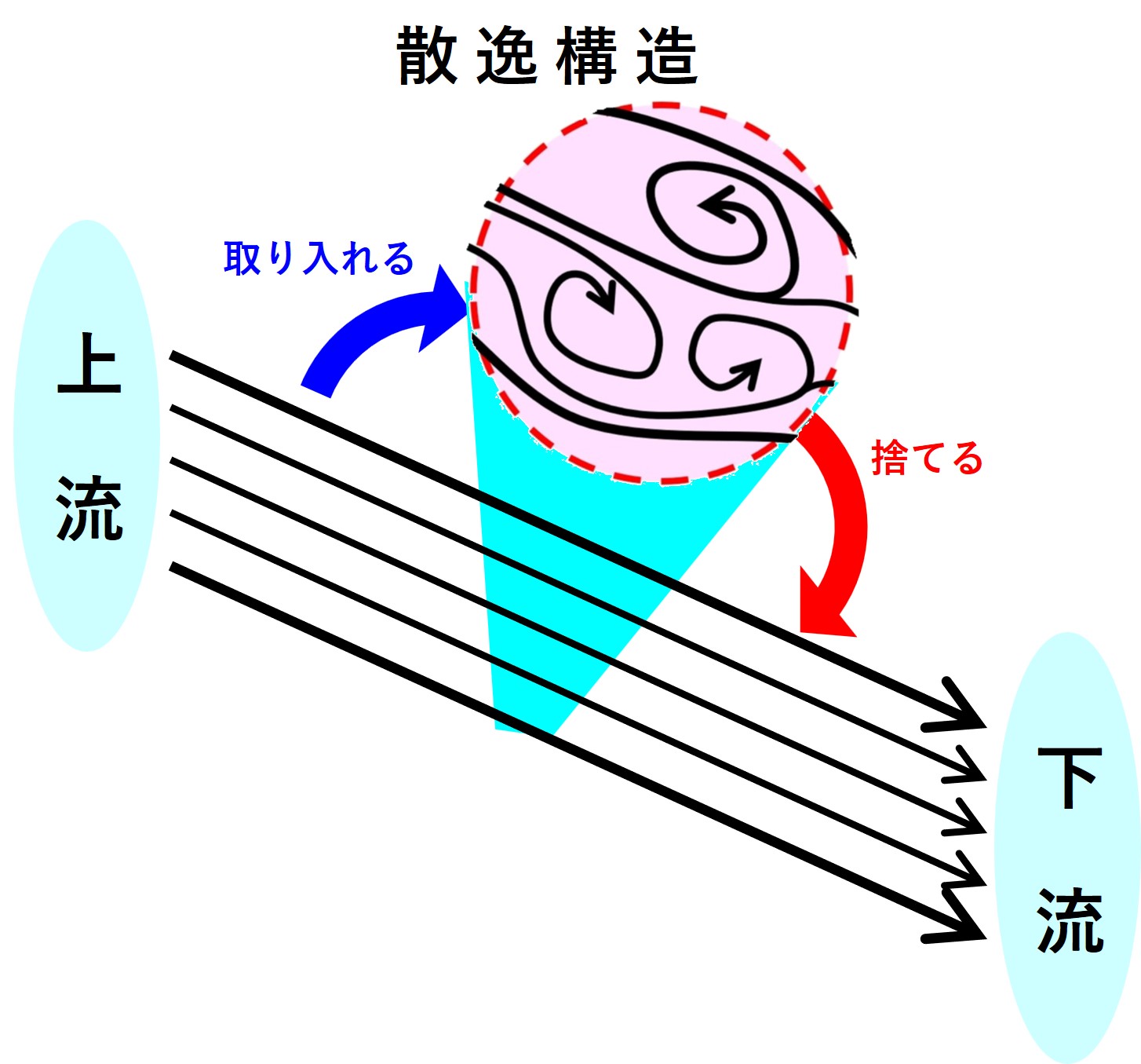 簡単に言うと、散逸構造とは、川の流れの途中に生じる渦模様のようなものです。