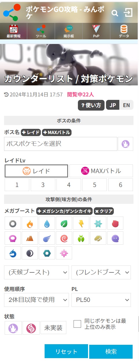 対策ポケモンの選定:ここでは、「強化の参考」で紹介しました「対策チェックページ」を利用します。