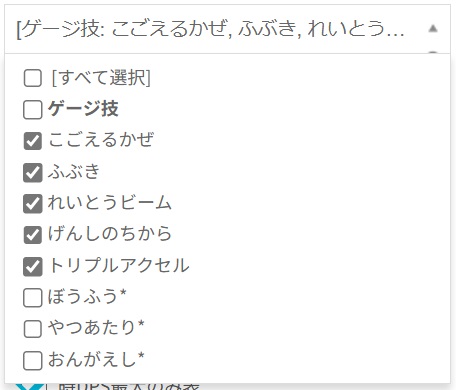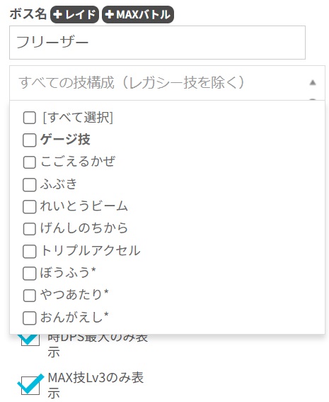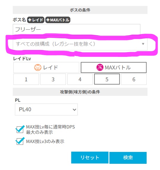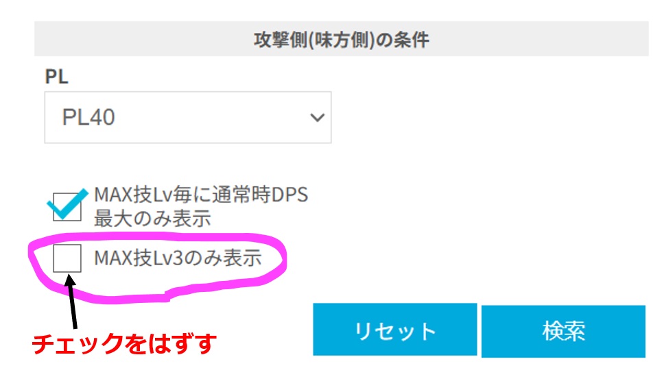 そこで、マックスわざ(Lv3)のチェックボックスを外して調べてみましょう。