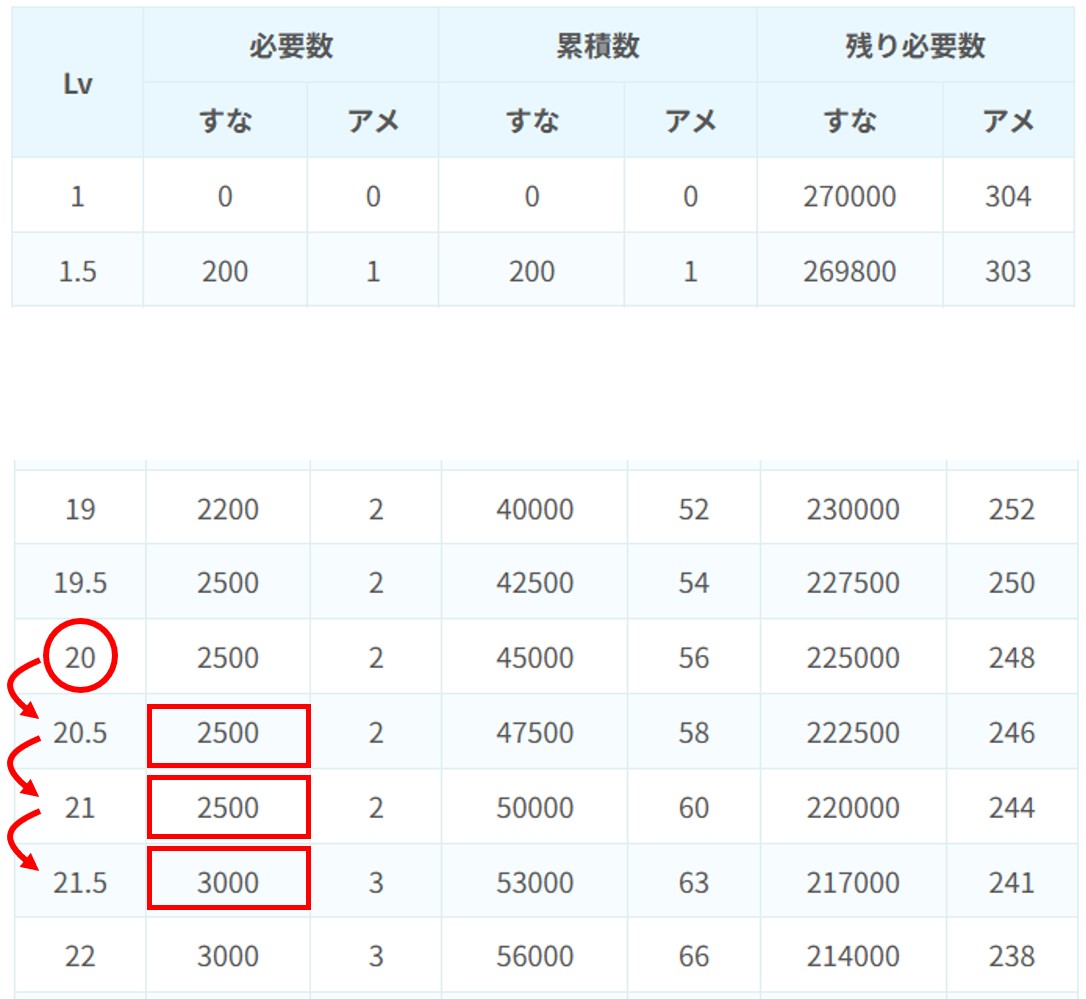 強化に必要なほしのすなとアメの数早見表 にアクセスします。