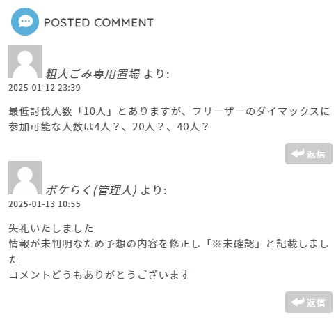 もし参加人数の枠が8名へ拡張されると、かなり楽になり、普通の伝説レイド(参加枠:20 名)と同じ感じでバトル参加しても勝てると思われますが、枠拡大の情報は今のところ出てきていません。
