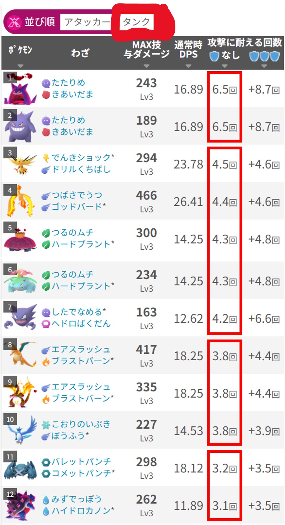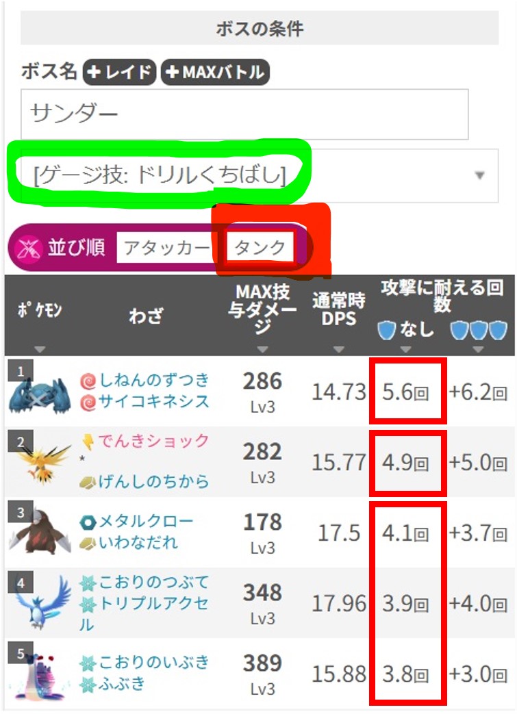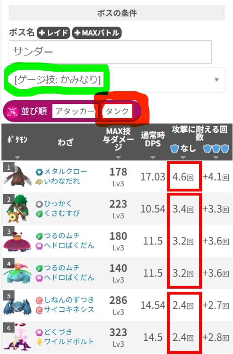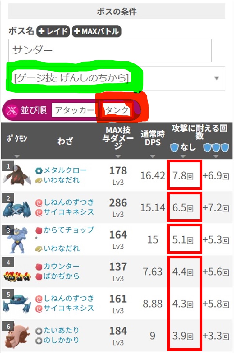 フリーザーからの攻撃に耐えるポケモン(いわゆるタンク)を探すときに、この選択肢を使用します。