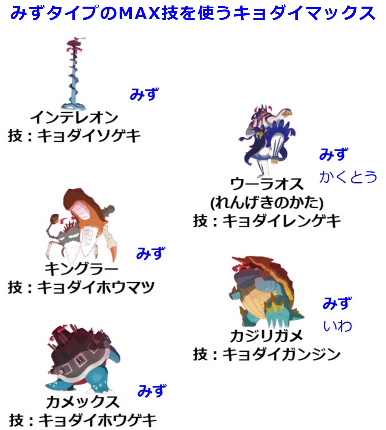 水タイプのマックスわざを使うキョダイマックスは次の5種類です。