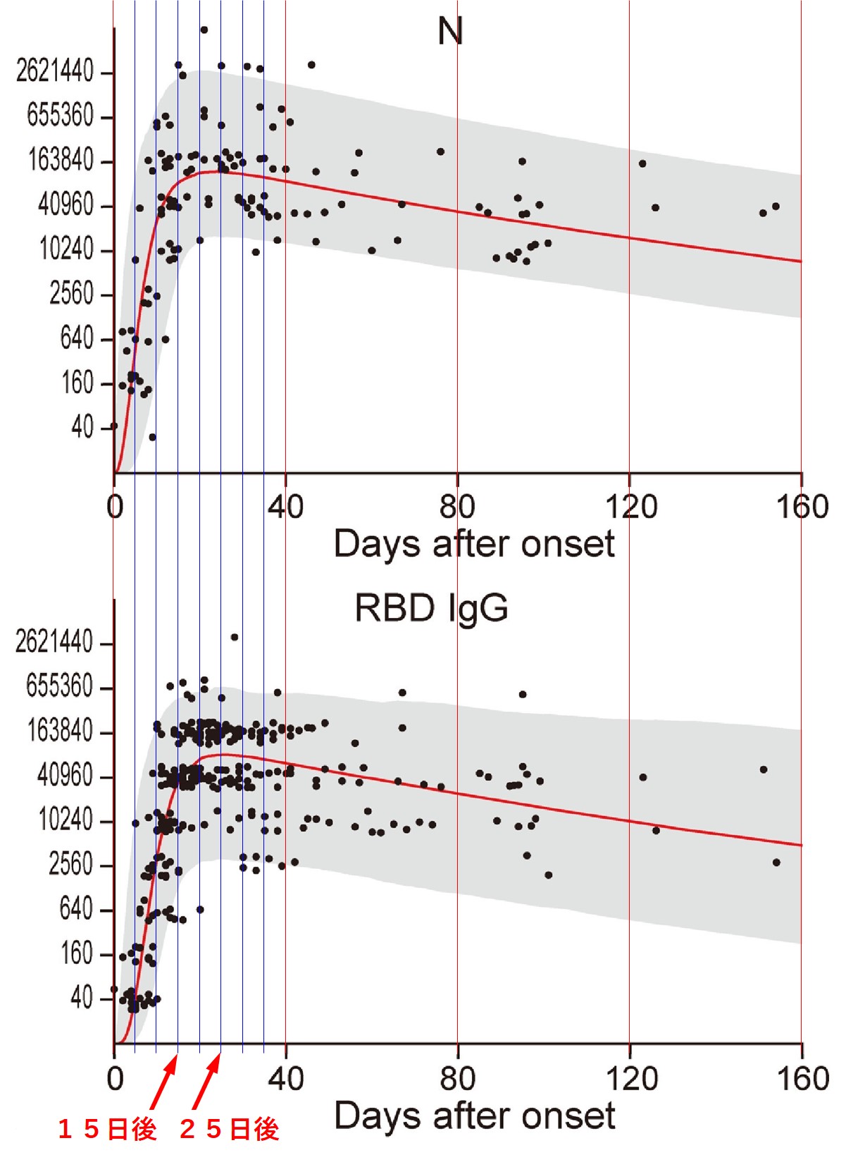 感染後の抗N抗体の動きを見ると、一般人と同じようなペースで増え始めたようであり、ゴキブリが多くのコロナウイルスと接してきたということによる先取りメリット(?)は何も見られませんでした。