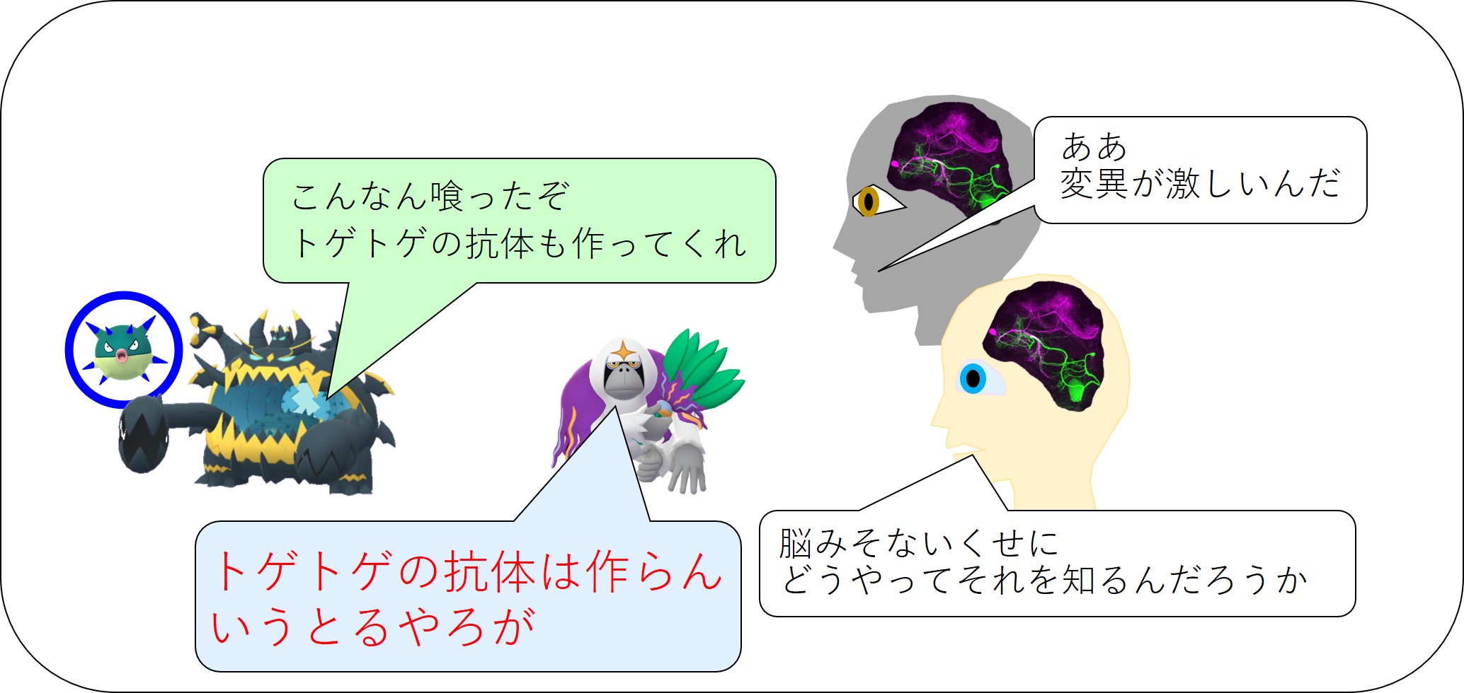 しかし、ここで「免疫系の任務は病原体の排除ではない、利用だ」と考えると、ひとつ上の次元で難しい考察をしないといけなくなるので、(ゴキブリごときが手を出してはいけない神聖な領域と心得て)そういう考察はやめておきます。