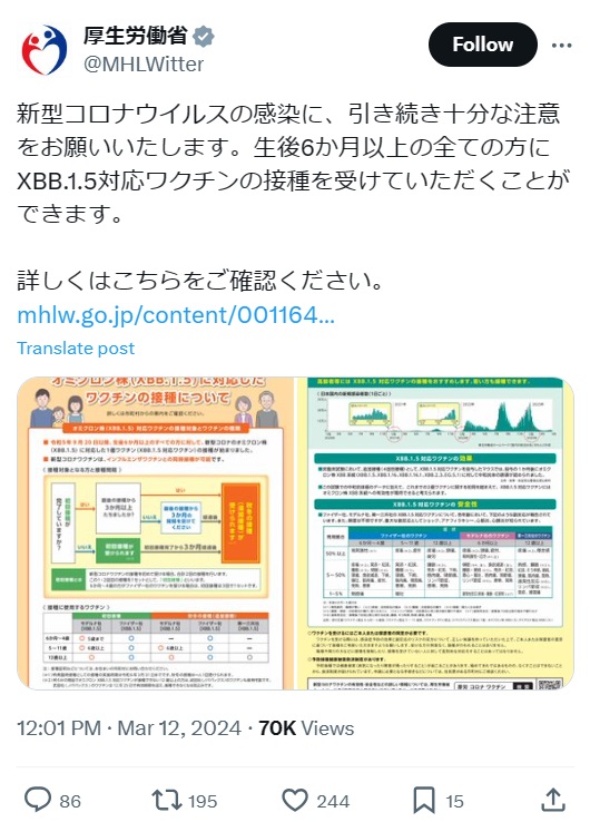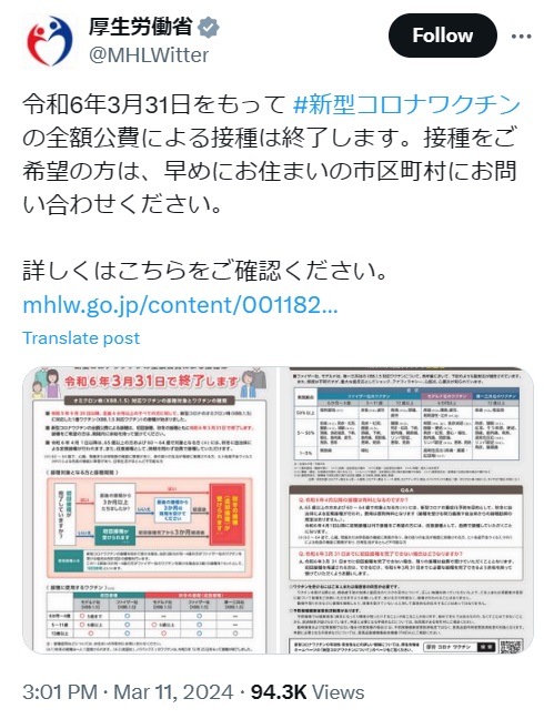 — 厚生労働省 (@MHLWitter) March 12, 2024