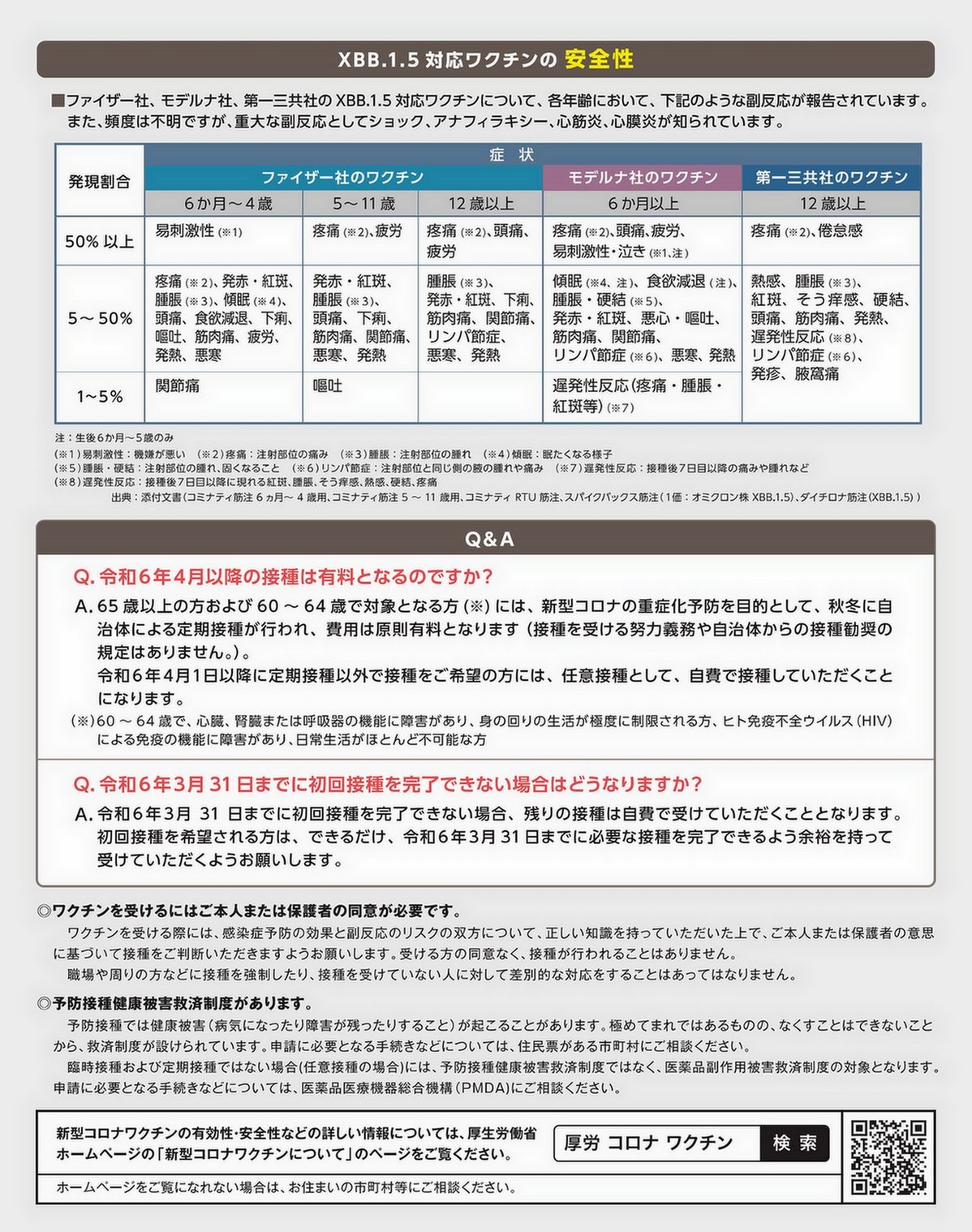 以下は、厚労省の呼びかけです。4月からワクチン接種は有料化するそうです。
