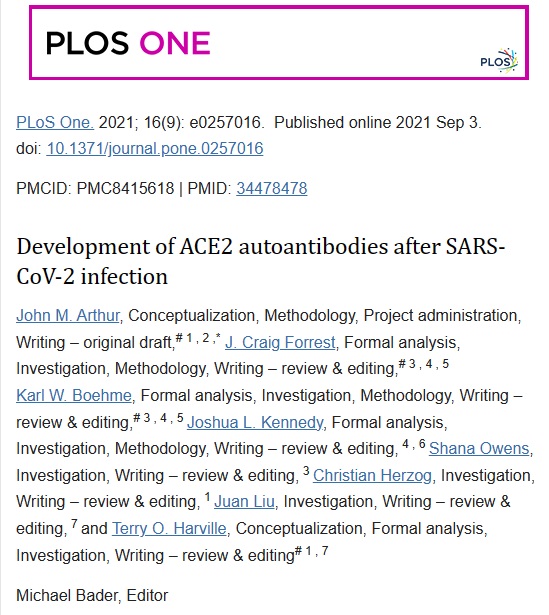 ◆ Development of ACE2 autoantibodies after SARS-CoV-2 infection (Sep 3, 2021):▶ ▶ ▶