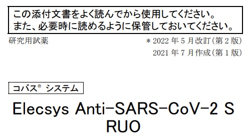 ロシュ社の抗S抗体検査キット「Elecsys Anti-SARS-CoV-2 S RUO」の対応状況確認は「SARS-CoV-2新規変異株の検査への影響について」で可能。