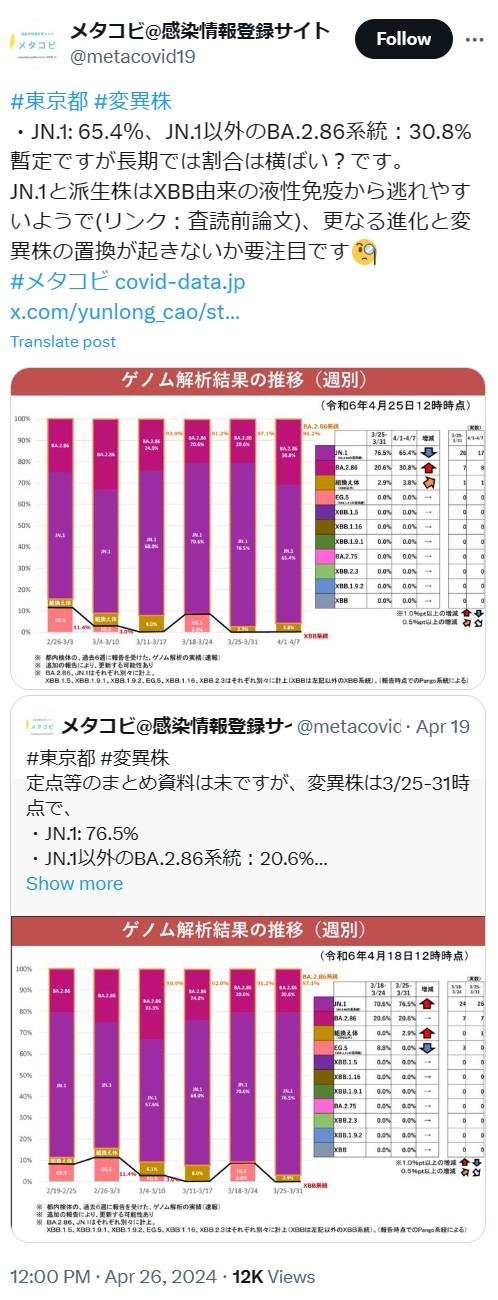 — メタコビ@感染情報登録サイト (@metacovid19) April 26, 2024