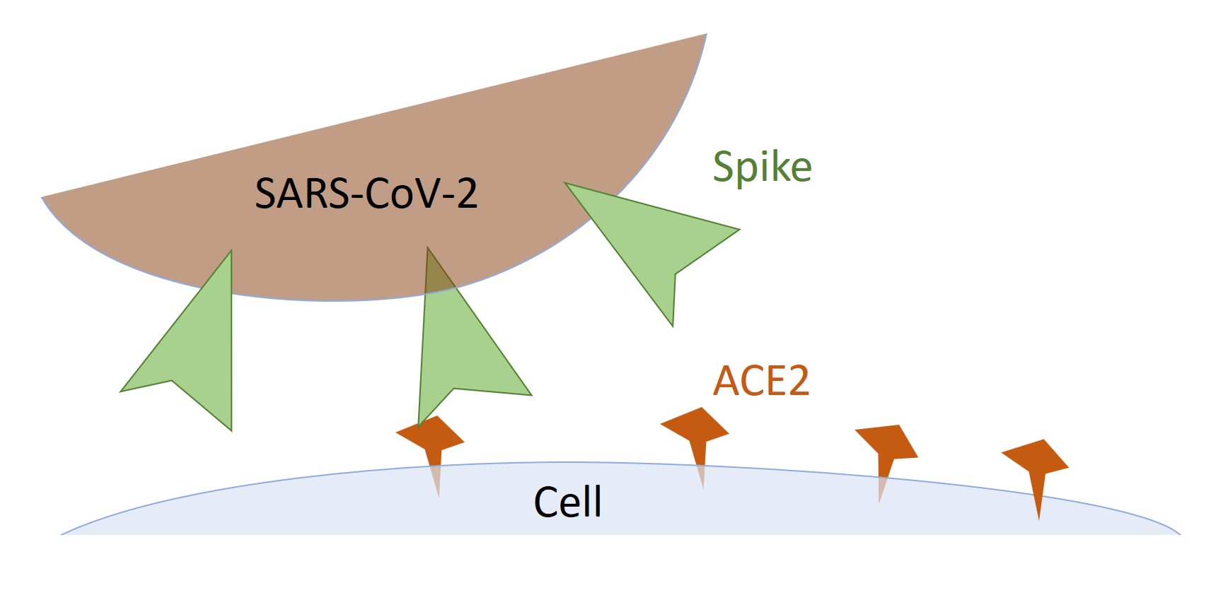 しかし、主たる侵入方法はヒトの細胞表面にある ACE2(Angiotensin-converting enzyme 2)という受容体に結合することで細胞内に入る方法です。