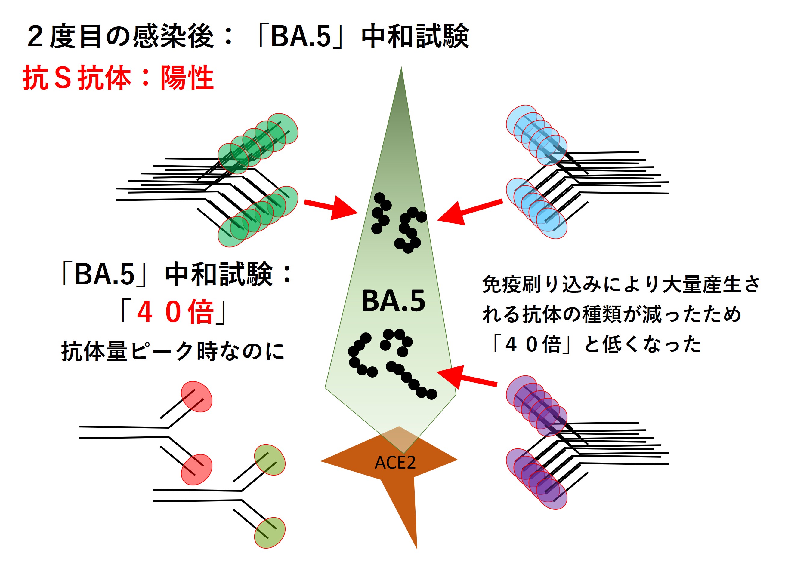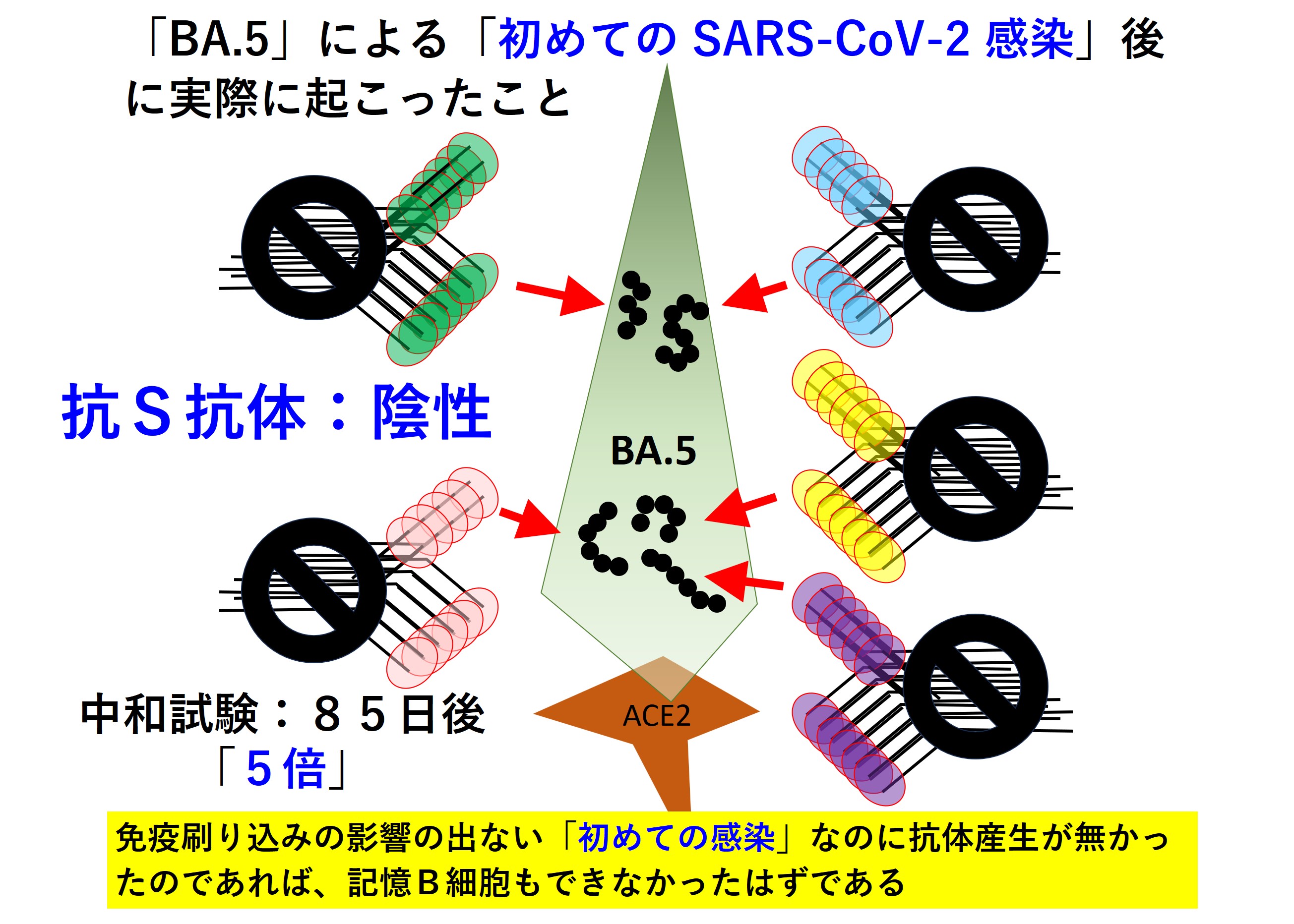 「おなかのコロナ」のスパイクと「BA.5」のスパイクの間には共通エピトープがまったくなく、免疫刷り込みの影響はとても大きなものになったと考えられます。