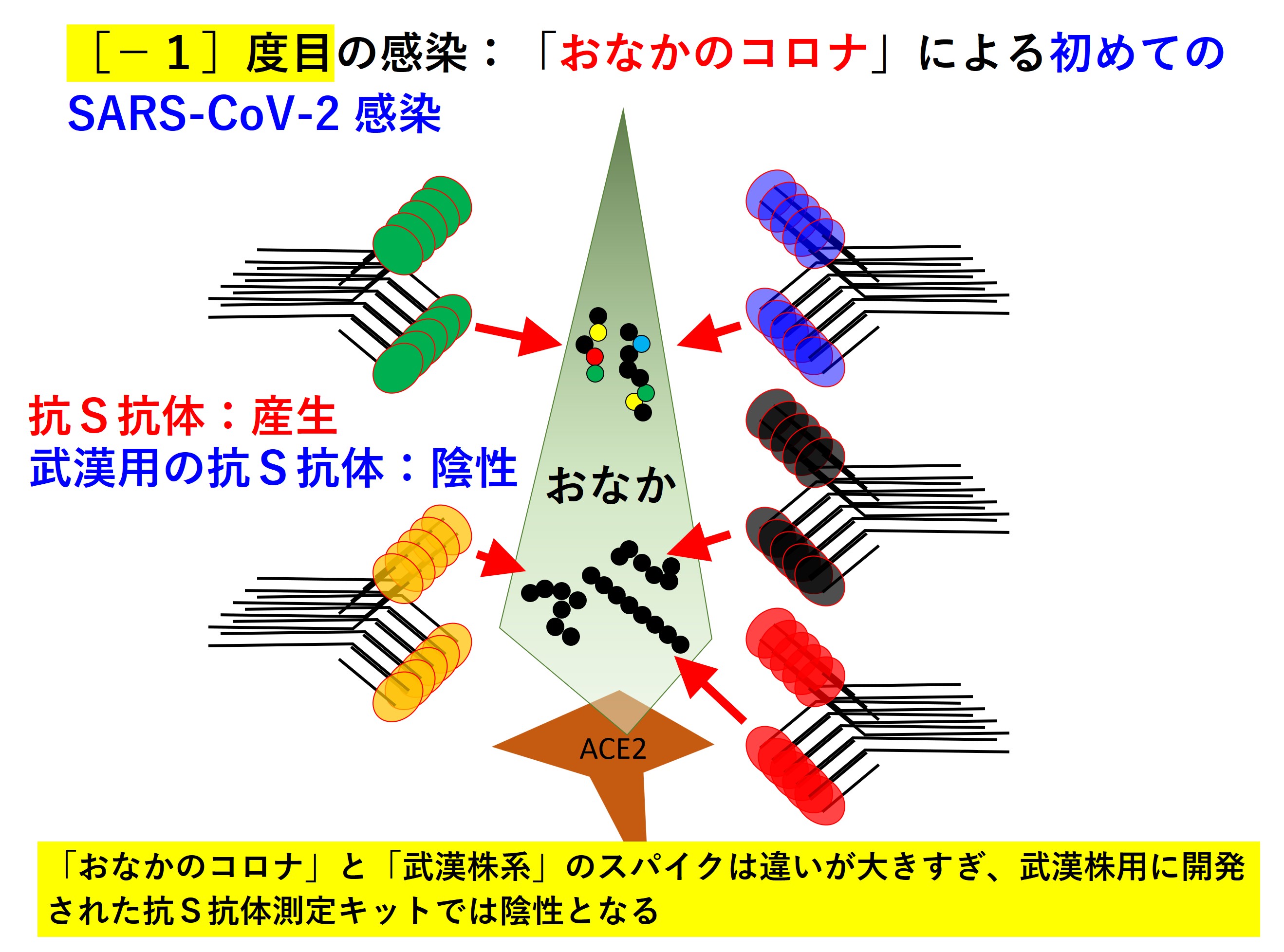 「おなかのコロナ」を SARS-CoV-2 感染の「本当の1度目」として図を描きなおしてみます。