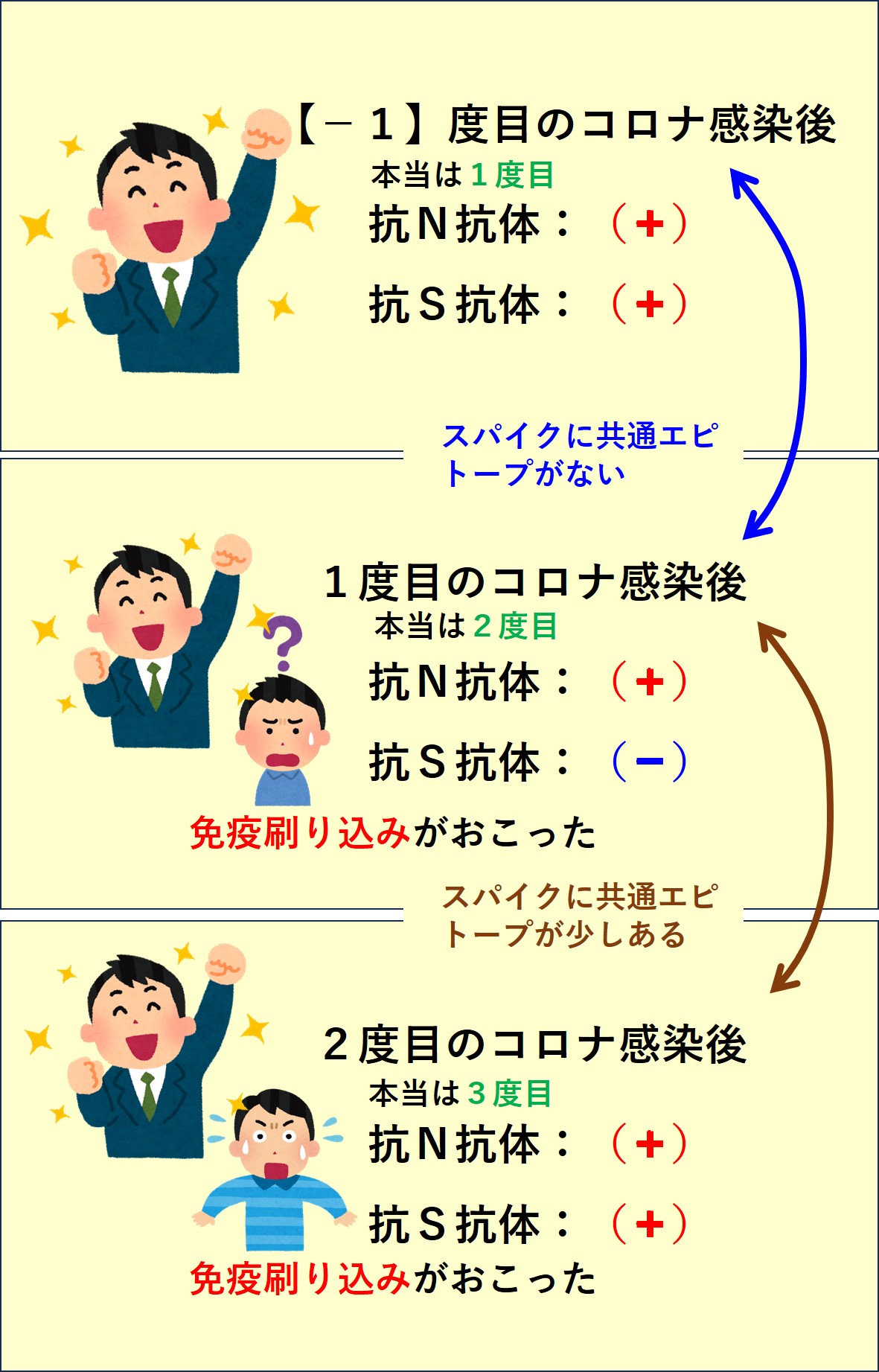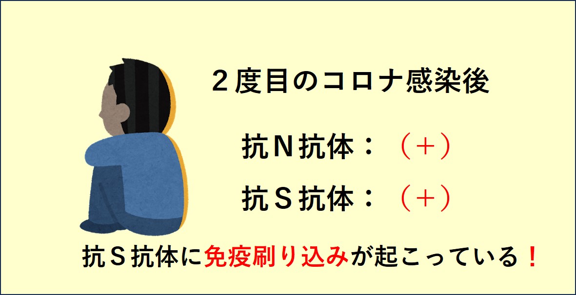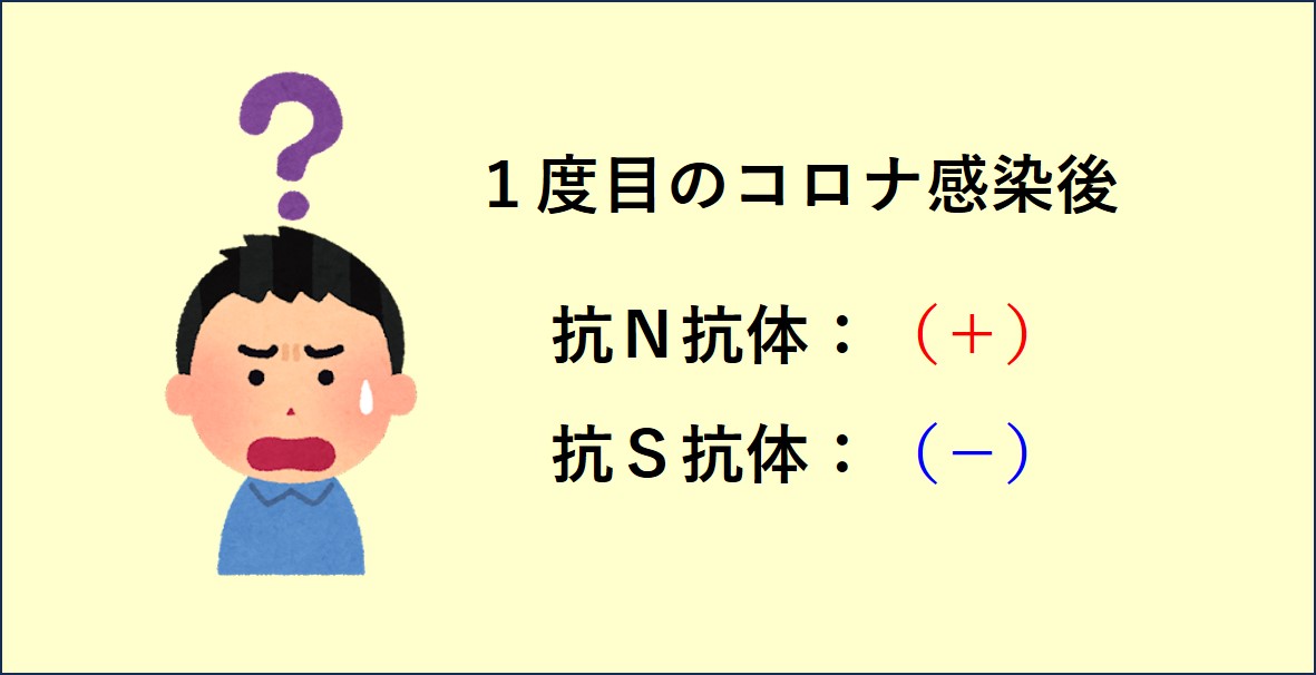 この[-1]度目の感染後は「抗N抗体 陽性、抗S抗体 陽性」となったはずです。