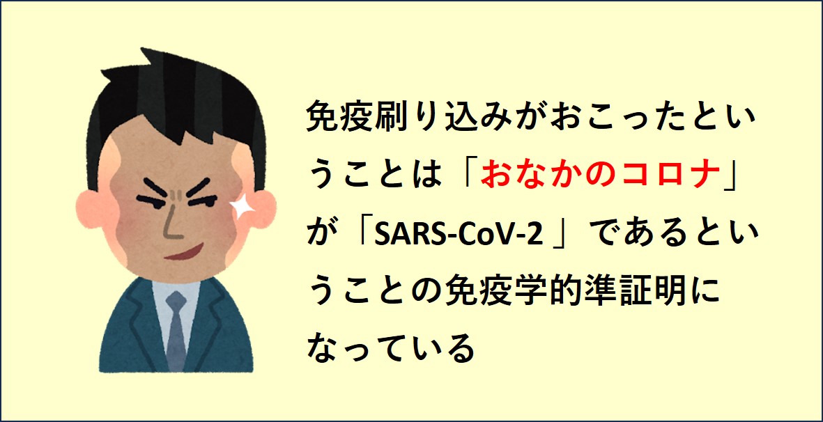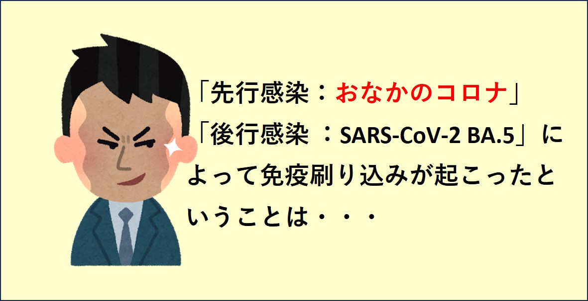 そこで先行感染としての SARS-CoV-2 感染として思い出したのが、「おなかのコロナ(湘南コロナ)」に感染した可能性でした。