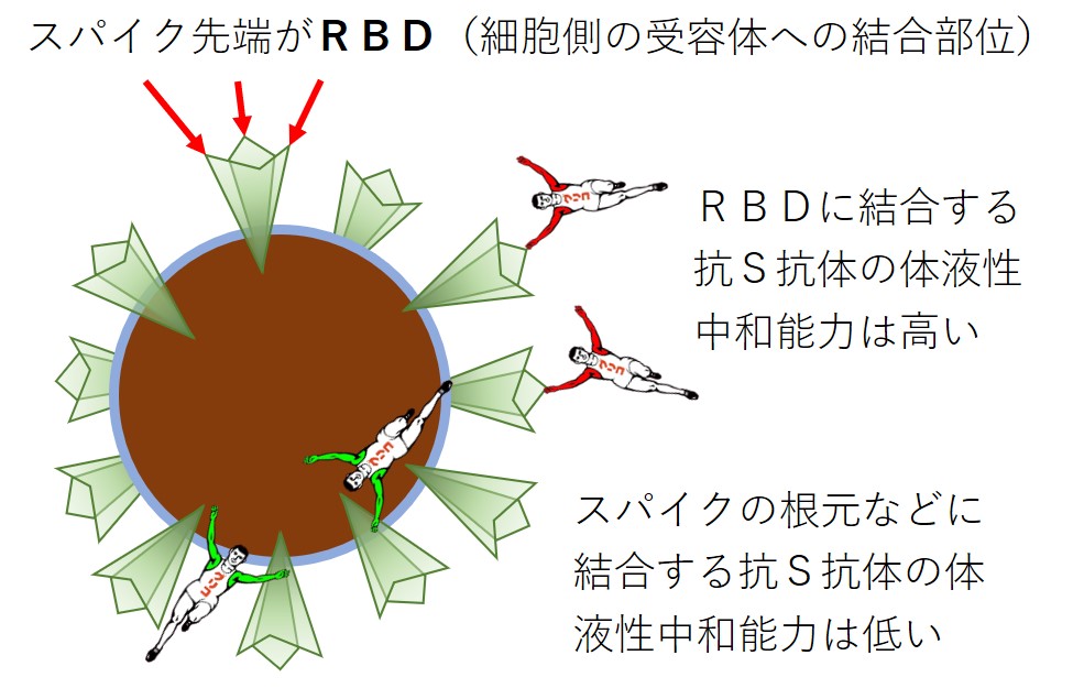 逆に言うと、スパイク先端(RBD)に結合する抗体による中和能力はかなり強力だということです。