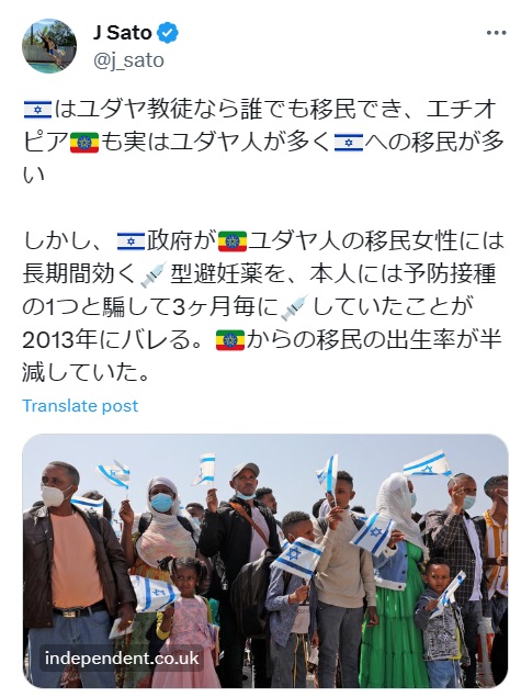 しかし、🇮🇱政府が🇪🇹ユダヤ人の移民女性には長期間効く💉型避妊薬を、本人には予防接種の1つと騙して3ヶ月毎に💉していたことが2013年にバレる。🇪🇹からの移民の出生率が半減していた。https://t.co/KixwprWZAN
