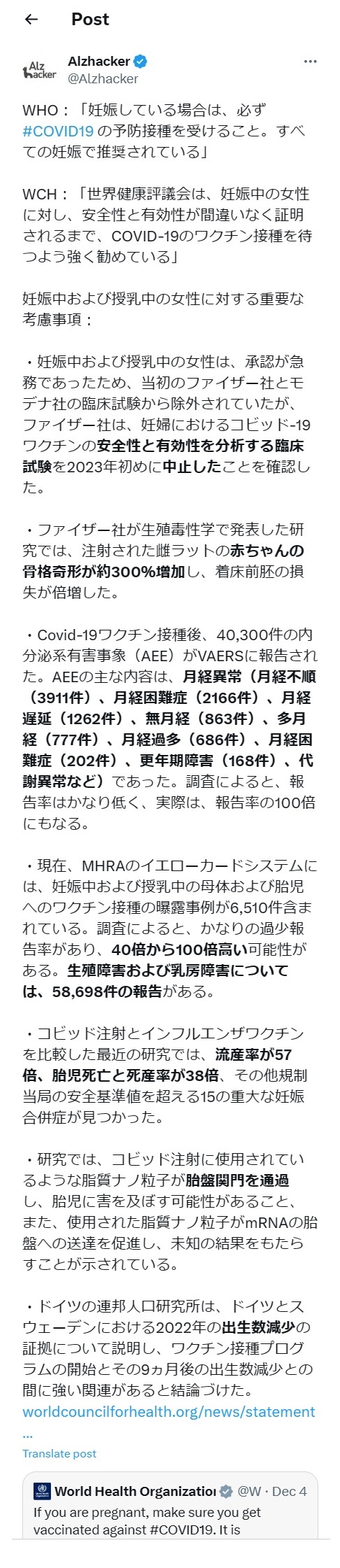 WCH:「世界健康評議会は、妊娠中の女性に対し、安全性と有効性が間違いなく証明されるまで、COVID-19のワクチン接種を待つよう強く勧めている」… https://t.co/EyAuu1fwEr