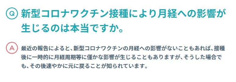 したがって、コロナに感染した時と同じようにmRNAワクチン接種によっても月経への影響が生じます。