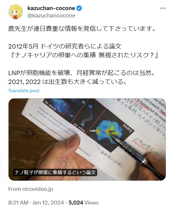 胎児側にもコロナワクチンのmRNAが行ってる証拠が見つかった(2024.1.24)