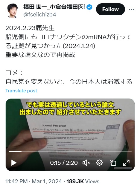 — 福田 世一_小倉台福田医院 院長 (@fseiichizb4) March 1, 2024