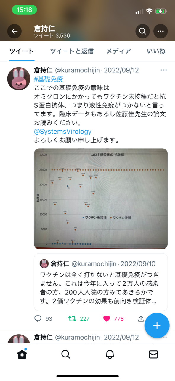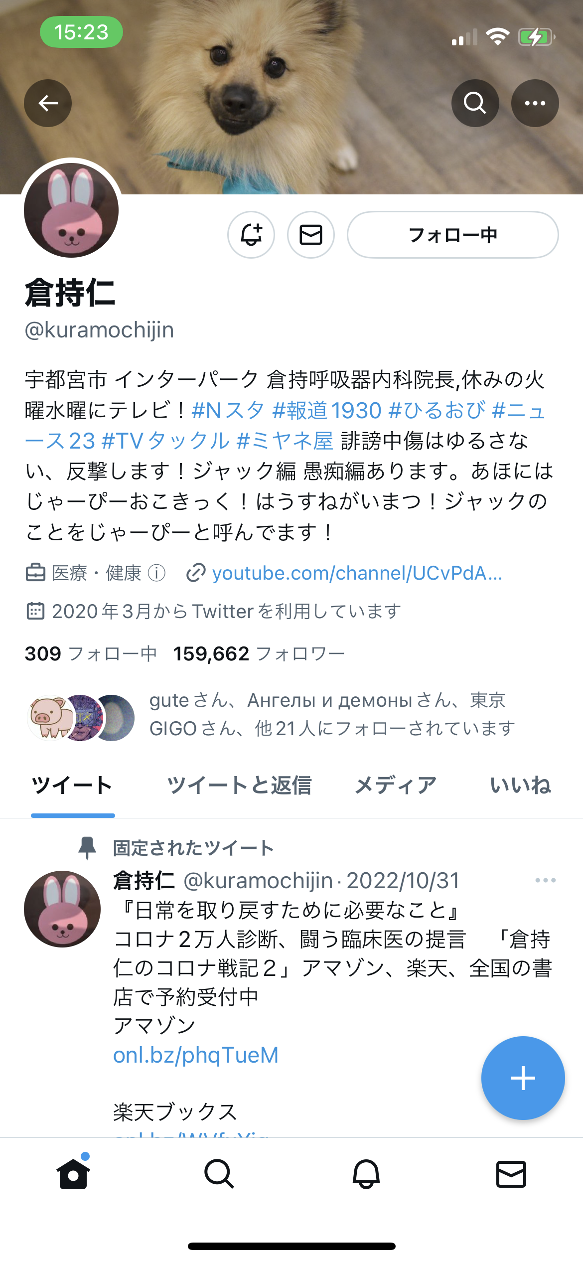 まずは、倉持医師の Twitter アカウントの紹介です(at 2022.11.08)。