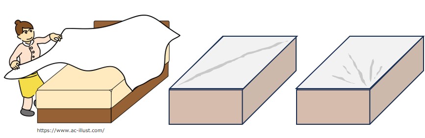 ベッドにシーツを敷くとき、シーツに均等にチカラがかからないとシワになります。
